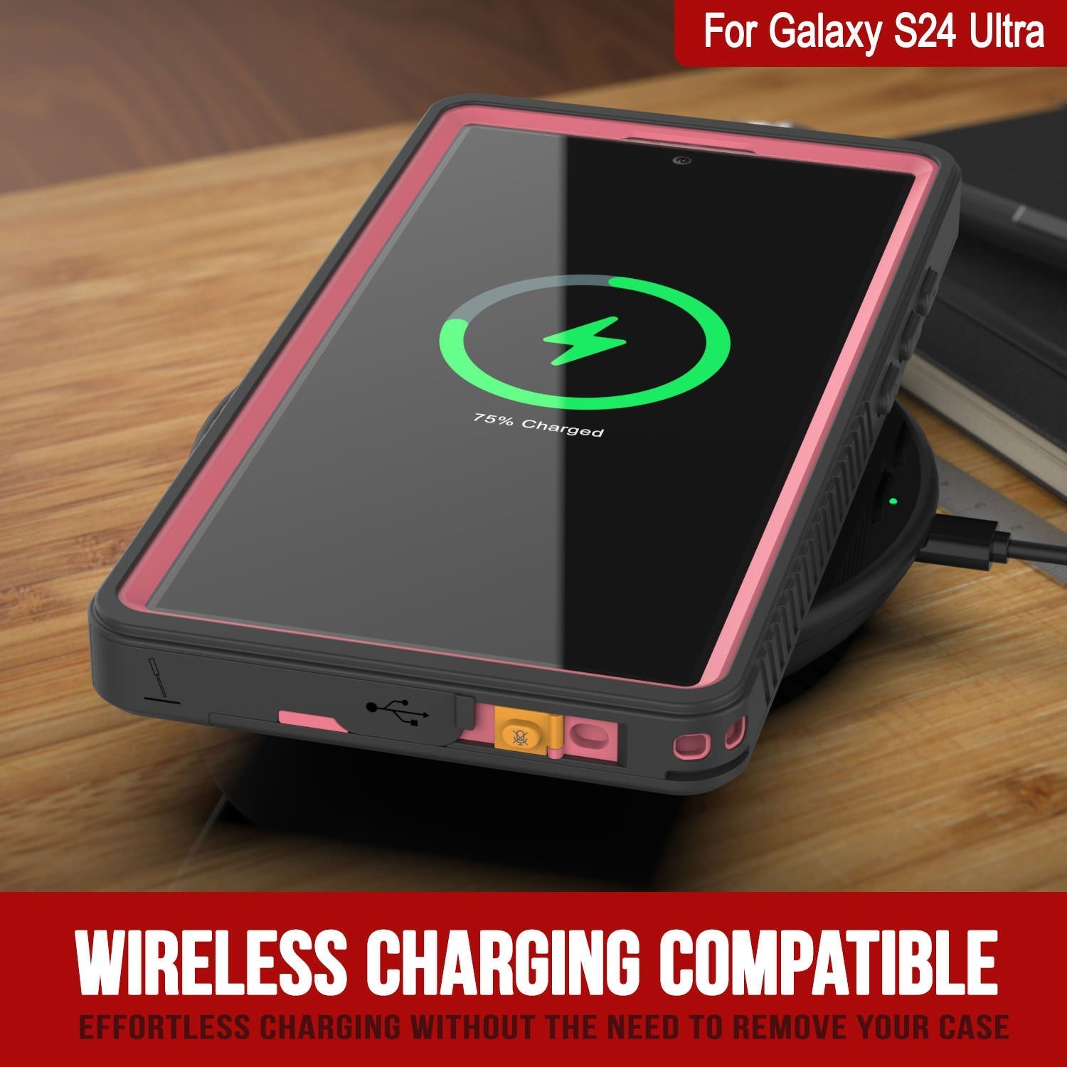 Funda impermeable Punkcase Galaxy S24 Ultra [Extreme Series] [Slim Fit] [Certificación IP68] [Resistente a los golpes] [Resistente a la suciedad] [Resistente a la nieve] - Funda de armadura para Galaxy S24 Ultra 5G (6.8") (2024) [Rosa]