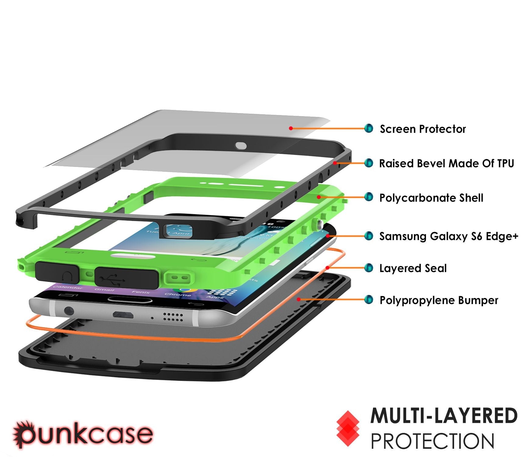 Galaxy s6 EDGE Plus Waterproof Case, Punkcase StudStar Light Green Series | Lifetime Warranty (Color in image: red)