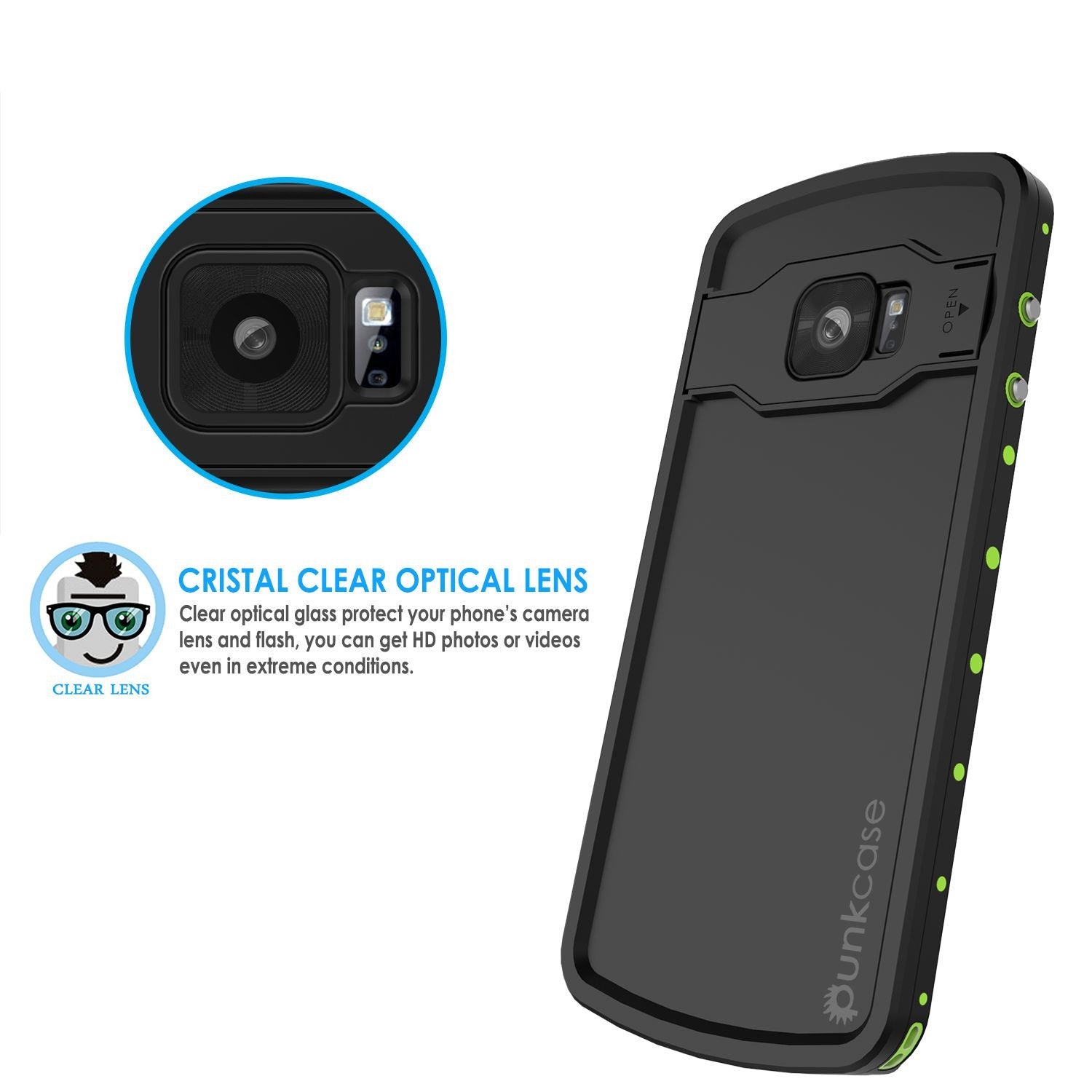 Galaxy s6 EDGE Plus Waterproof Case, Punkcase StudStar Light Green Series | Lifetime Warranty (Color in image: black)