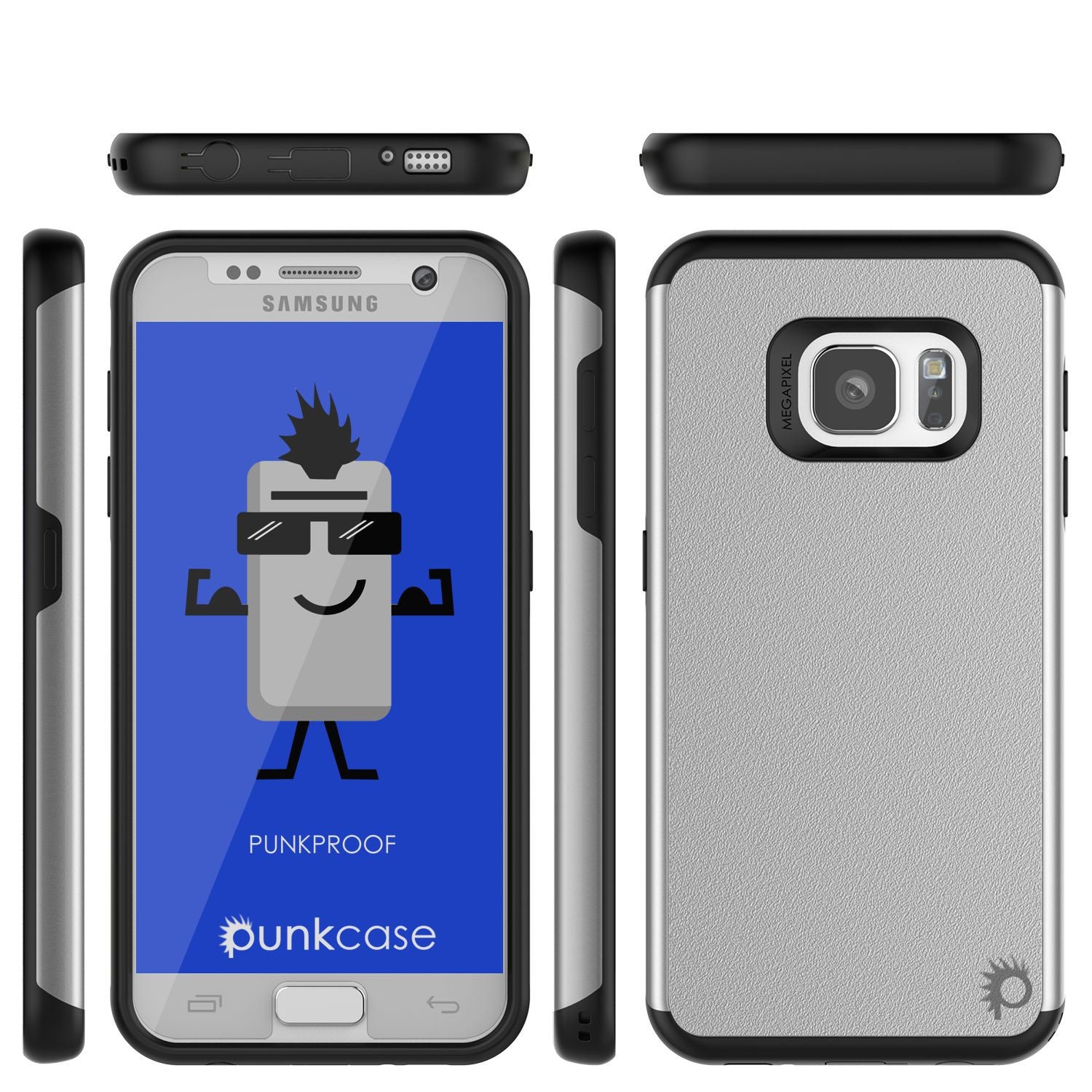 Estuche Galaxy s7 PunkCase Galactic Silver Series para Galaxy s7 Funda protectora delgada de armadura suave con cubierta de vidrio templado Garantía de por vida.