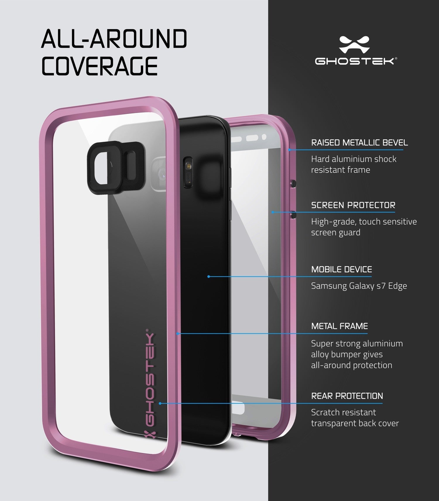• La funda Atomic 2.0 de Ghostek está hecha con un resistente bumber de aleación de aluminio, un protector de pantalla resistente a los arañazos y sensible al tacto, goma para proporcionar un agarre antideslizante y proteger las aberturas de los puertos, y una película de policarbonato sella para que el color de tu teléfono pueda brillar a través