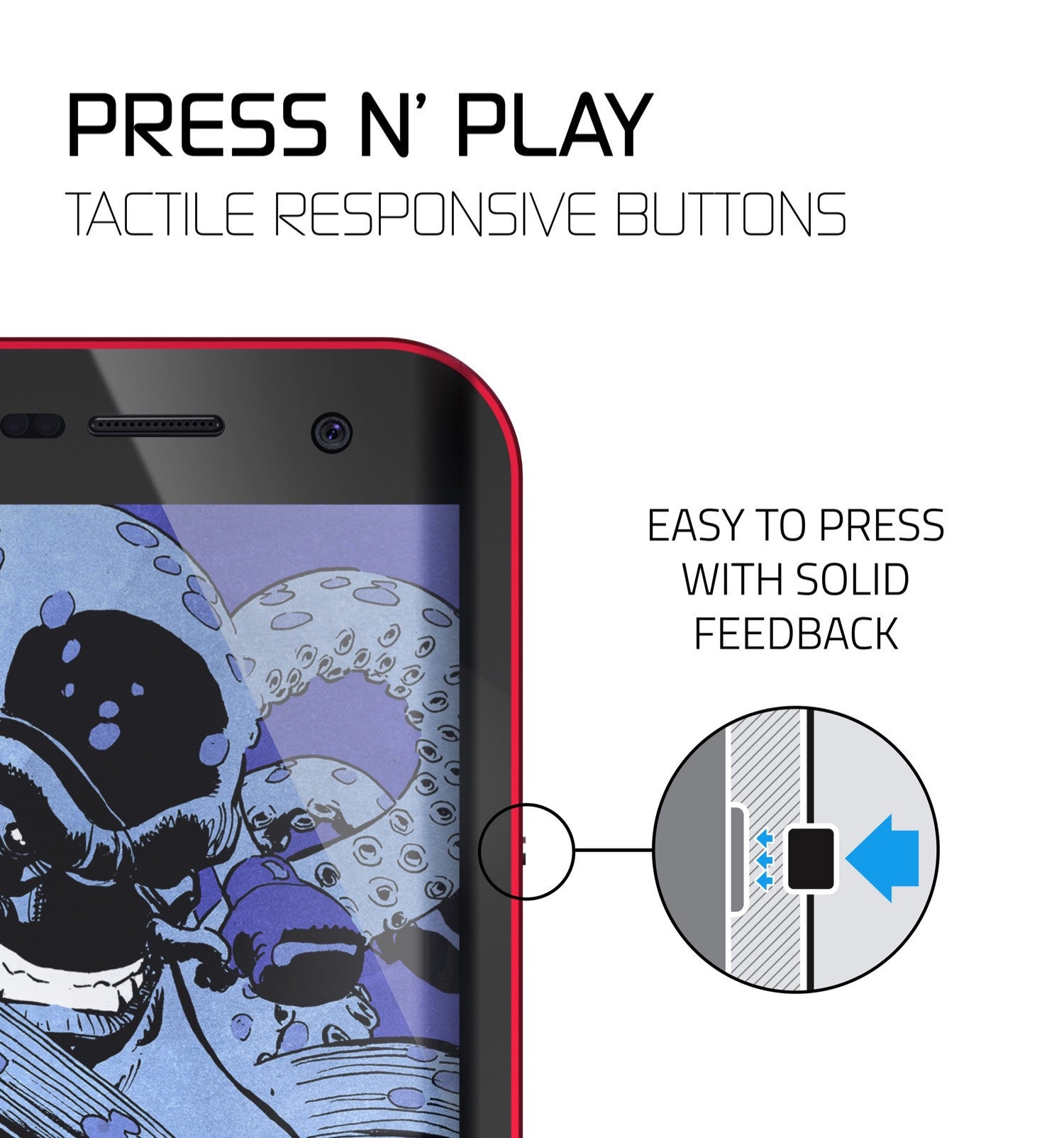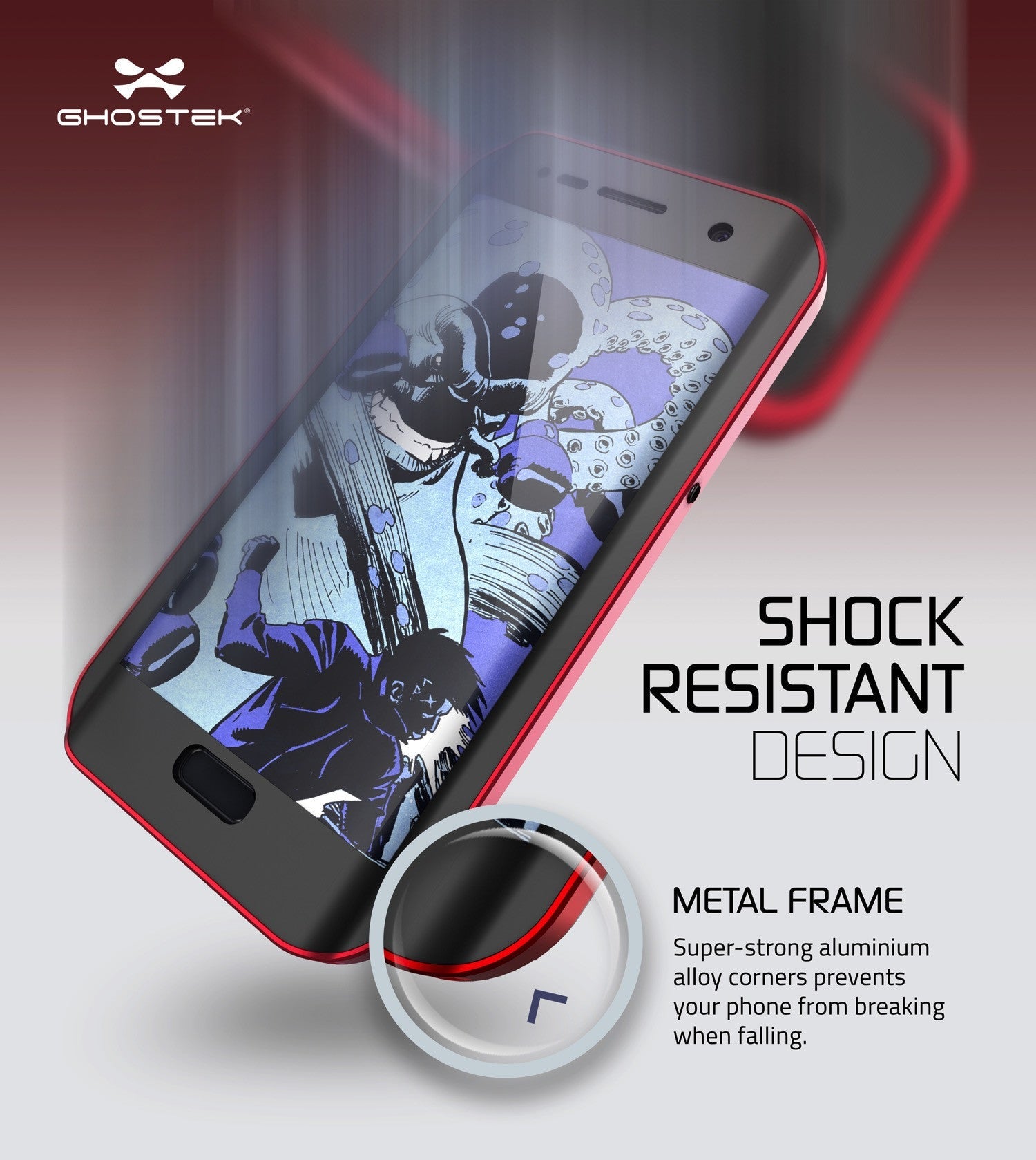 • La funda Atomic 2.0 de Ghostek está hecha con un resistente parachoques de aleación de aluminio, un protector de pantalla resistente a los arañazos y sensible al tacto, goma para proporcionar un agarre antideslizante y proteger las aberturas de los puertos, y una lámina de policarbonato que permite que el color de su teléfono brille a través