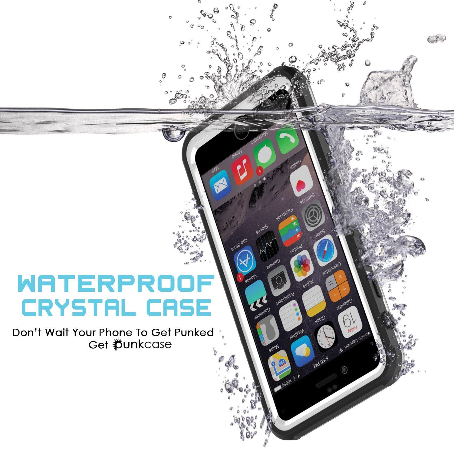 Funda impermeable iPhone 6S+ PLUS/6+ PLUS, PUNKcase CRYSTAL White Apple iPhone 6S+ PLUS/6+ PLUS con protector de pantalla adjunto | Garantía de cambio de por vida