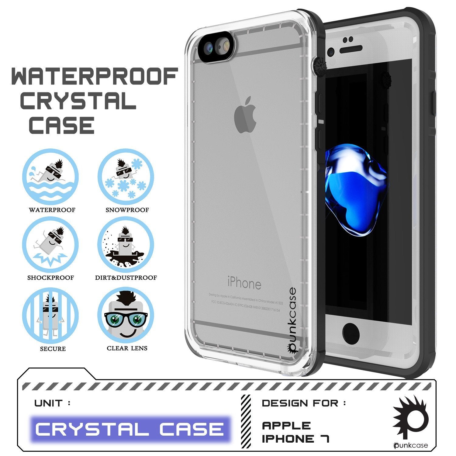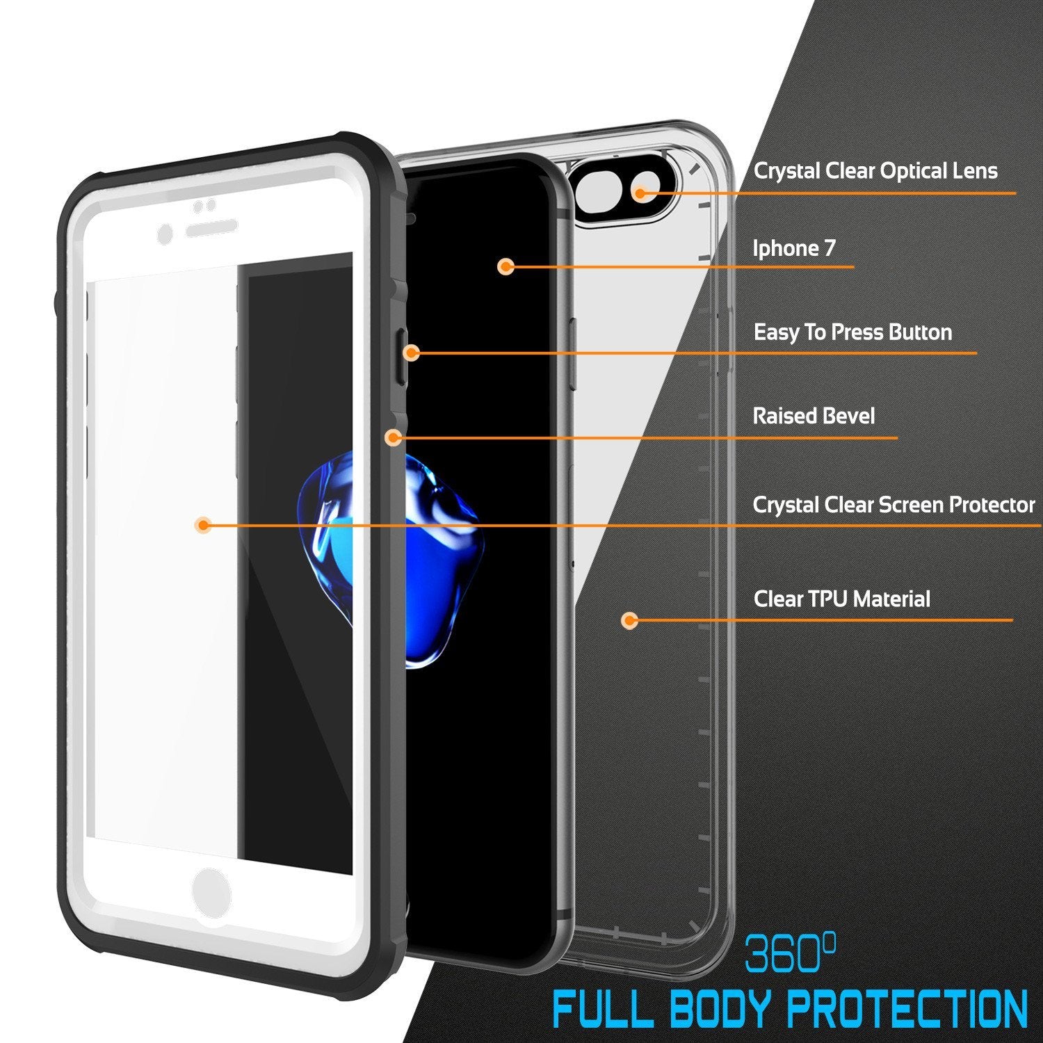 Apple iPhone 8 Waterproof Case, PUNKcase CRYSTAL White W/ Attached Screen Protector  | Warranty (Color in image: Black)