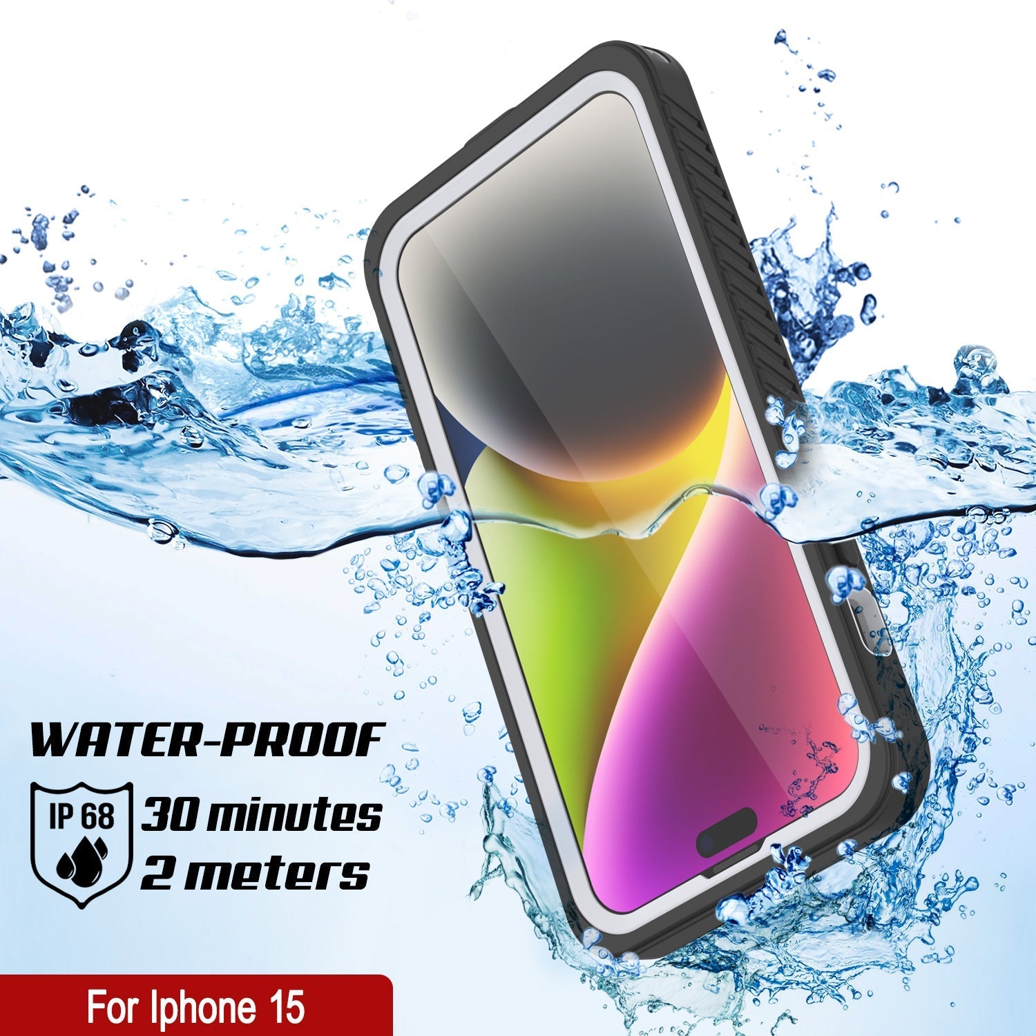 Funda impermeable para iPhone 15, Punkcase [Extreme Series] [Slim Fit] [IP68 Certified] [Shockproof] [Snowproof] [Dirtproof] Cubierta de armadura con protector de pantalla incorporado para Apple iPhone 15 [Blanco]
