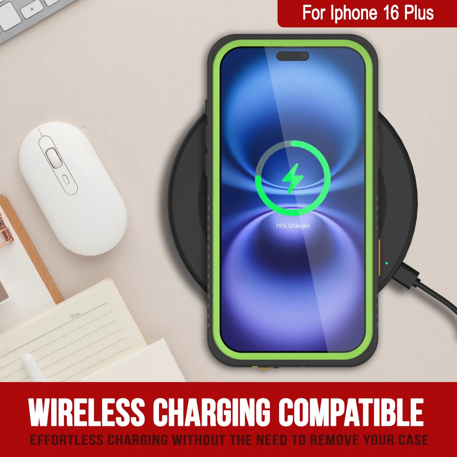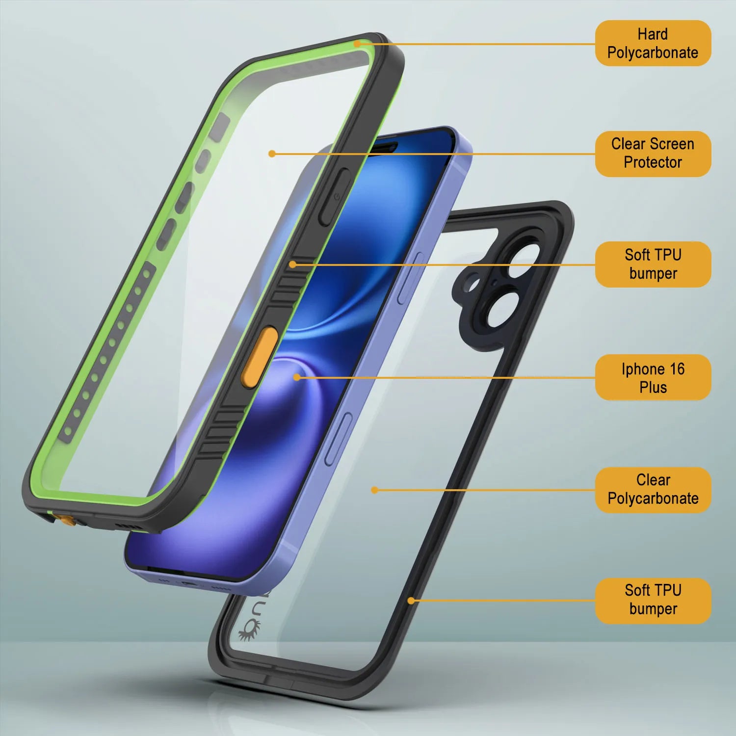 iPhone 16MásFunda impermeable, Punkcase [Serie Extreme] [Ajuste delgado] [Certificación IP68] [A prueba de golpes] [A prueba de nieve] [A prueba de suciedad] Funda protectora con protector de pantalla incorporado para Apple iPhone 16Más[VERDE CLARO]
