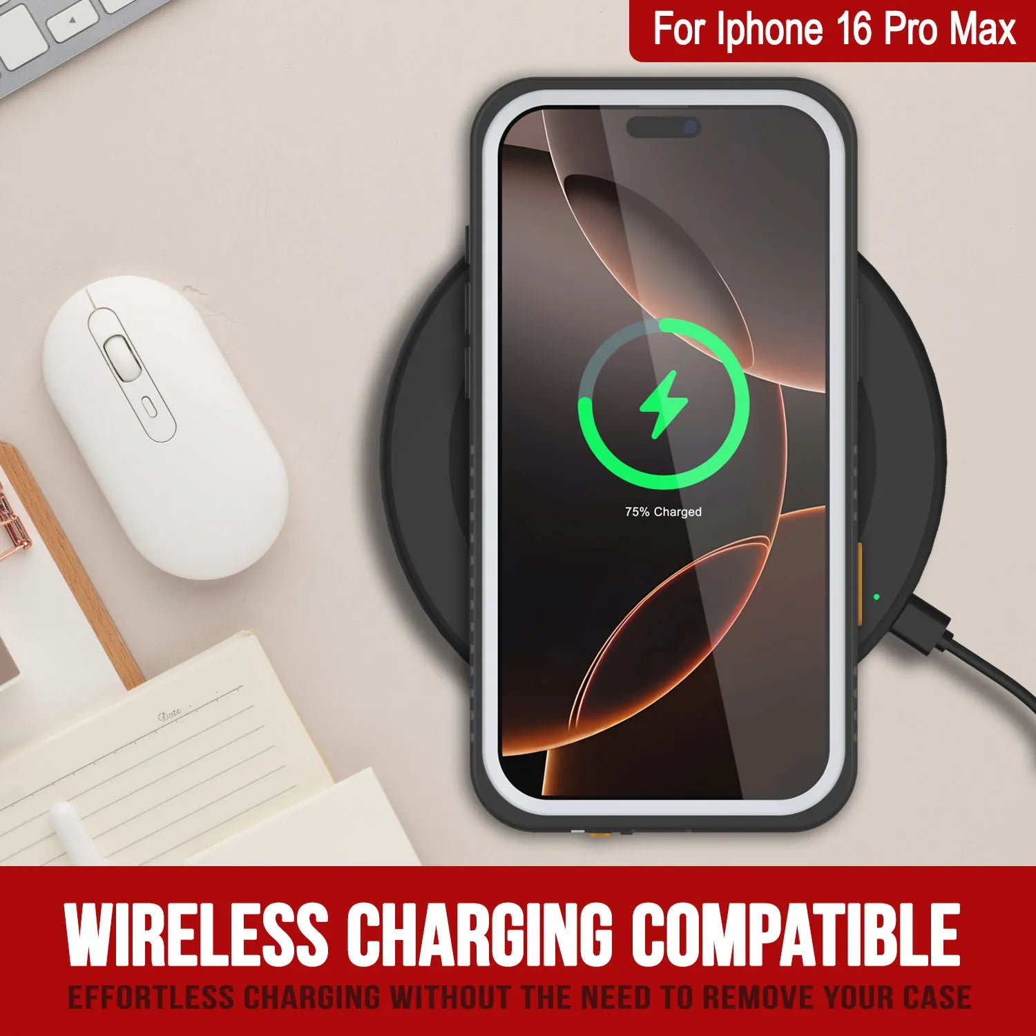 Funda impermeable para iPhone 16 Pro, Punkcase [Serie Extreme] [Ajuste fino] [Certificación IP68] [A prueba de golpes] [A prueba de nieve] [A prueba de suciedad] Funda protectora con protector de pantalla incorporado para Apple iPhone 16 ProMáximo[Blanco]