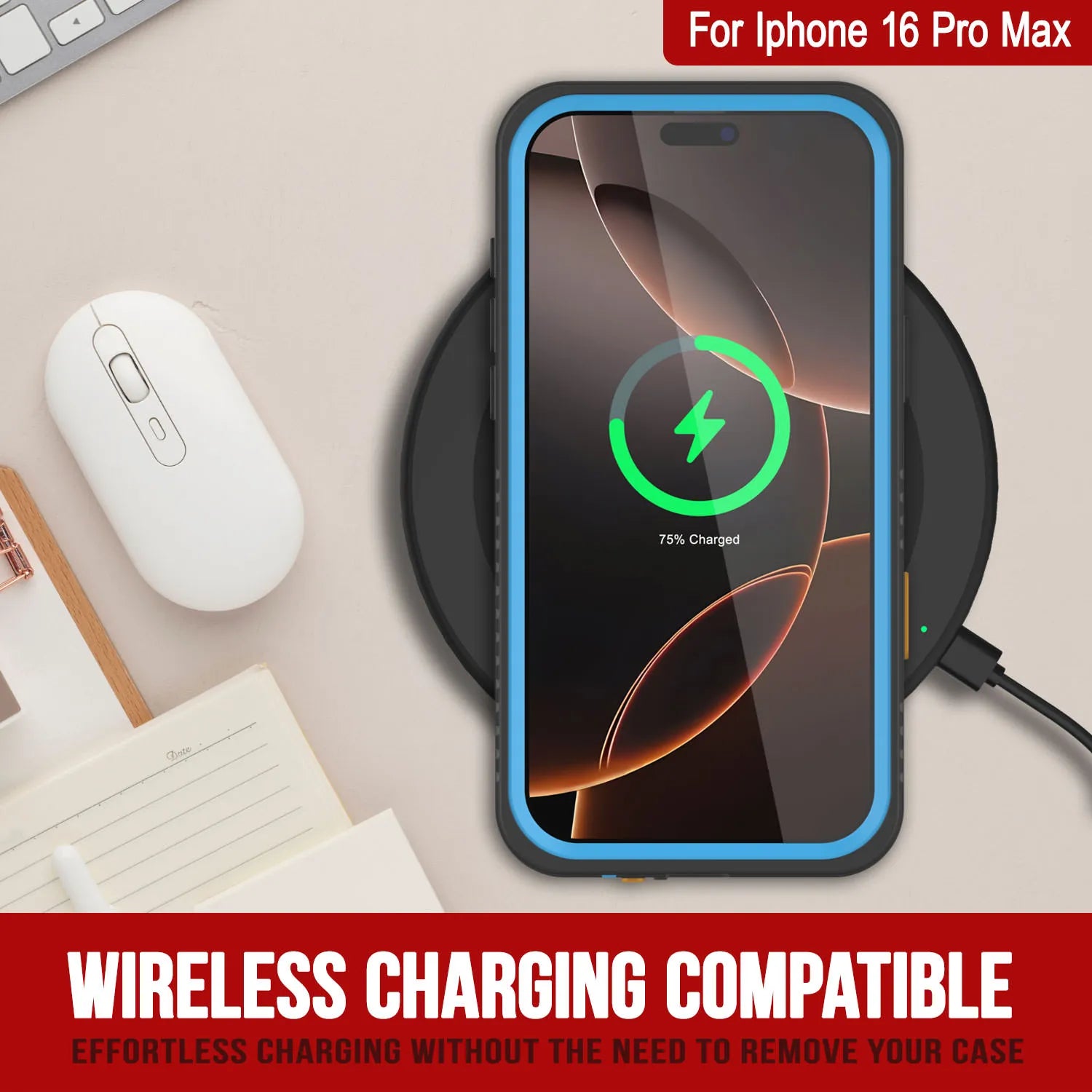 iPhone 16 ProMáximoFunda impermeable, Punkcase [Serie Extreme] [Ajuste delgado] [Certificación IP68] [A prueba de golpes] [A prueba de nieve] [A prueba de suciedad] Funda protectora con protector de pantalla incorporado para Apple iPhone 16 ProMáximo[Azul claro]