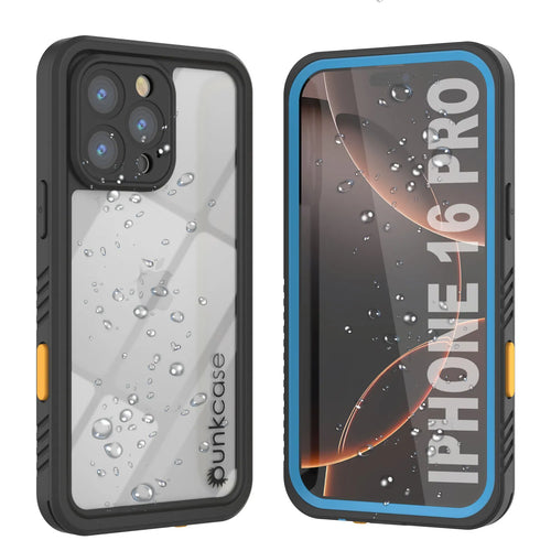 Funda impermeable para iPhone 16 Pro, Punkcase [Extreme Series] Armor Cover con protector de pantalla incorporado [azul claro]