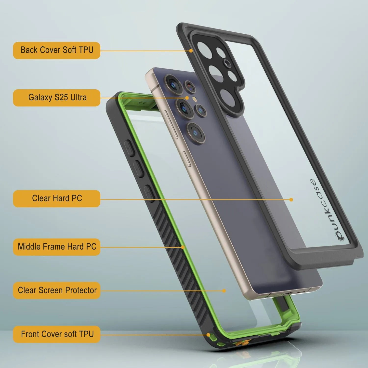 Funda protectora de pantalla para Galaxy S25 Ultra resistente al agua y a los golpes [Serie Extreme] [Verde claro]