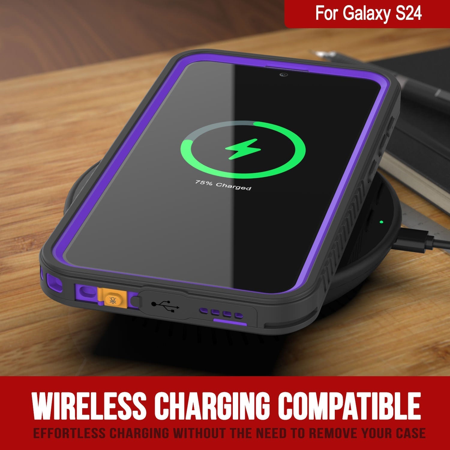 La carcasa resistente al agua Punkcase Galaxy S24 [Extreme Series] [Slim Fit] [Certificado IP68] [Resistente a los golpes] [Resistente al polvo] [Resistente a la nieve] es una cubierta de armadura para el Galaxy S24 5G (6.2" ) (2024) en color morado.