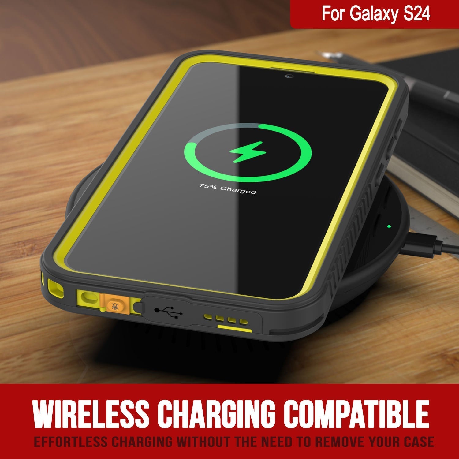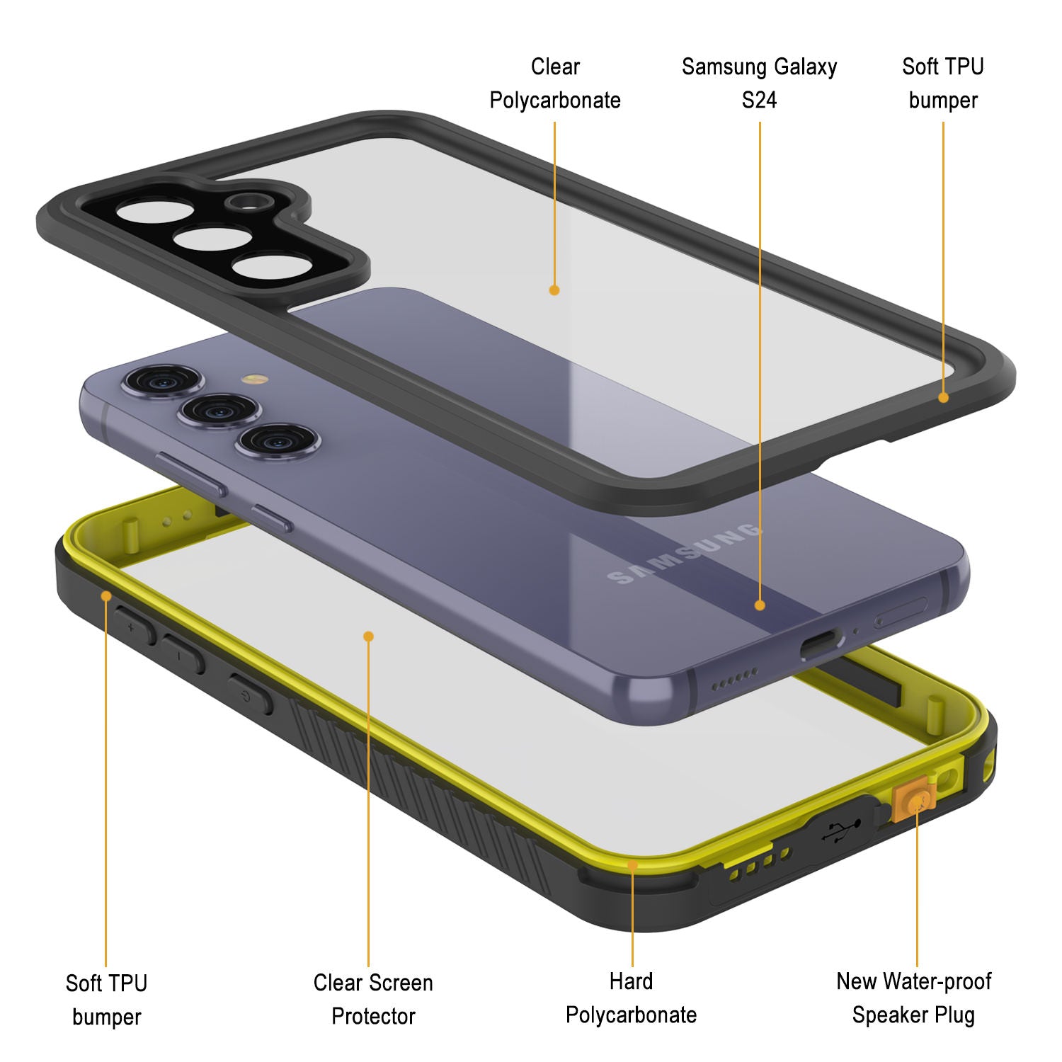 Funda impermeable Punkcase Galaxy S24 [Serie Extrema] [Ajuste perfecto] [Certificado IP68] [Resistente a golpes] [A prueba de suciedad] [A prueba de nieve] para Galaxy S24 5G (6.2") (2024) [Amarillo]