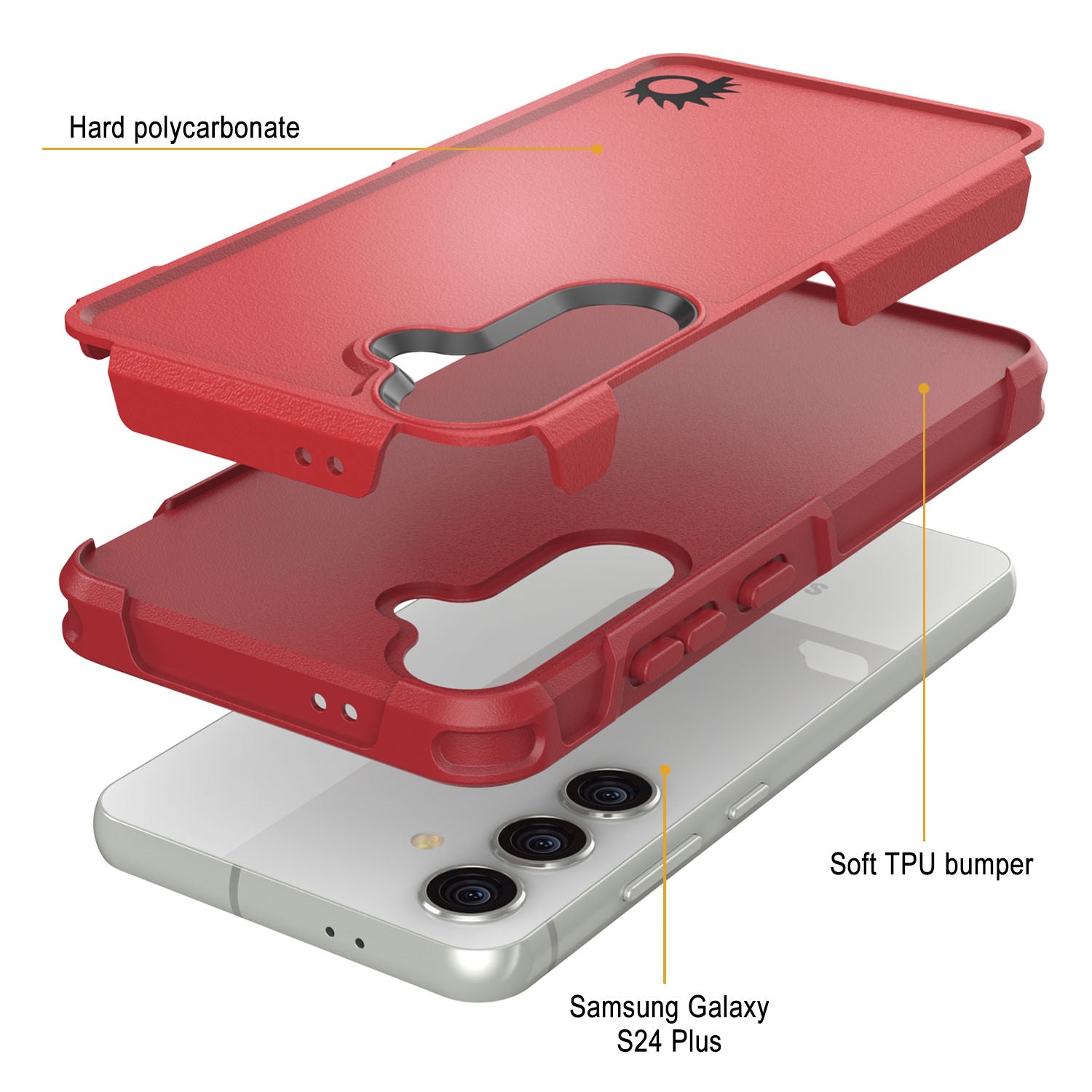 PunkCase Funda Galaxy S24+ Plus, [Serie Spartan 2.0] Cubierta Resistente y Duradera Transparente [Rojo]