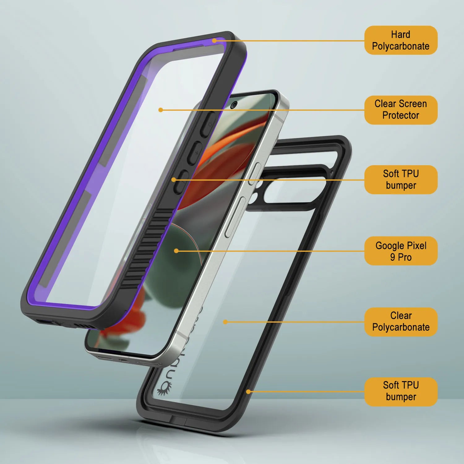 Caso impermeable de Google Pixel 9 Pro, cubierta de armadura punkcase [serie extrema] con protector de pantalla incorporado [púrpura]