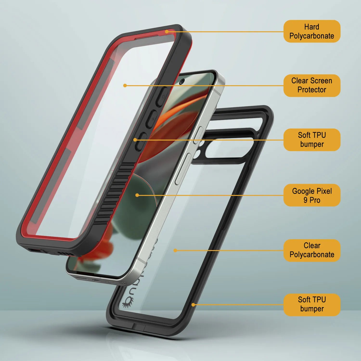 Caso impermeable de Google Pixel 9 Pro, cubierta de armadura punkcase [serie extrema] con protector de pantalla incorporado [rojo]
