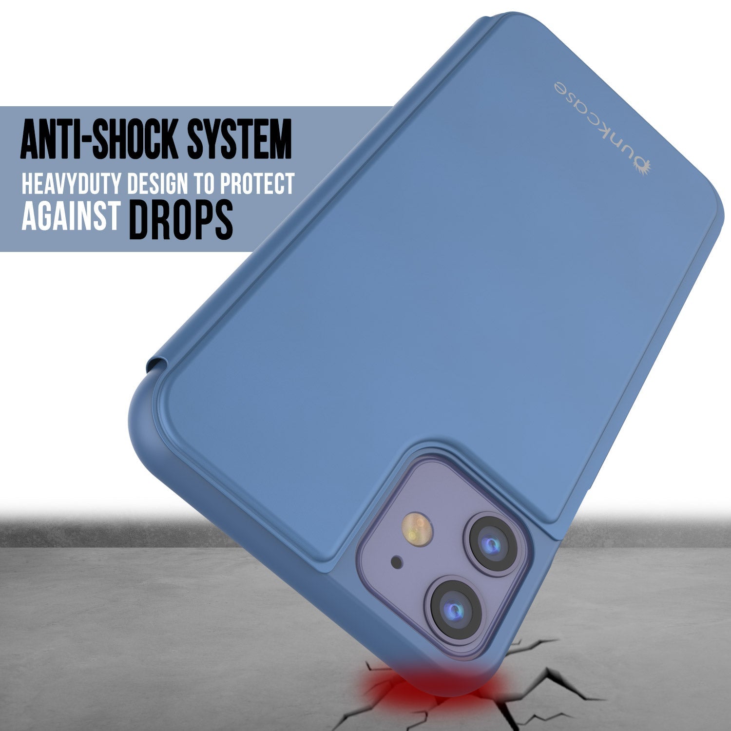 Estuche protector Punkcase iPhone XI Reflector con tapa abatible, frontal de espejo translúcido resistente a los arañazos y parte trasera de piel sintética antideslizante con soporte integrado compatible con Apple iPhone XI (azul)