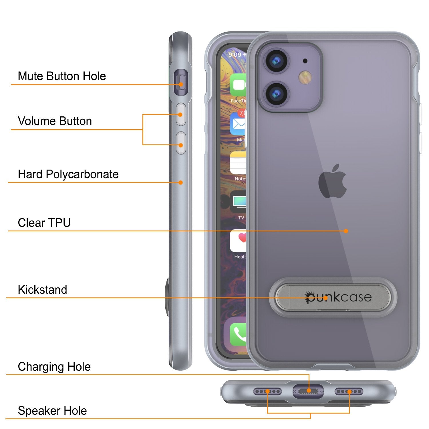 Funda iPhone 12, PUNKcase [Serie LUCID 3.0] [Ajuste Delgado] [Parte Trasera Transparente] Cubierta Protectora con Soporte Integrado, Sistema Anti-Shock y Protector de Pantalla PUNKSHIELD para Apple iPhone 12 [Plateado]