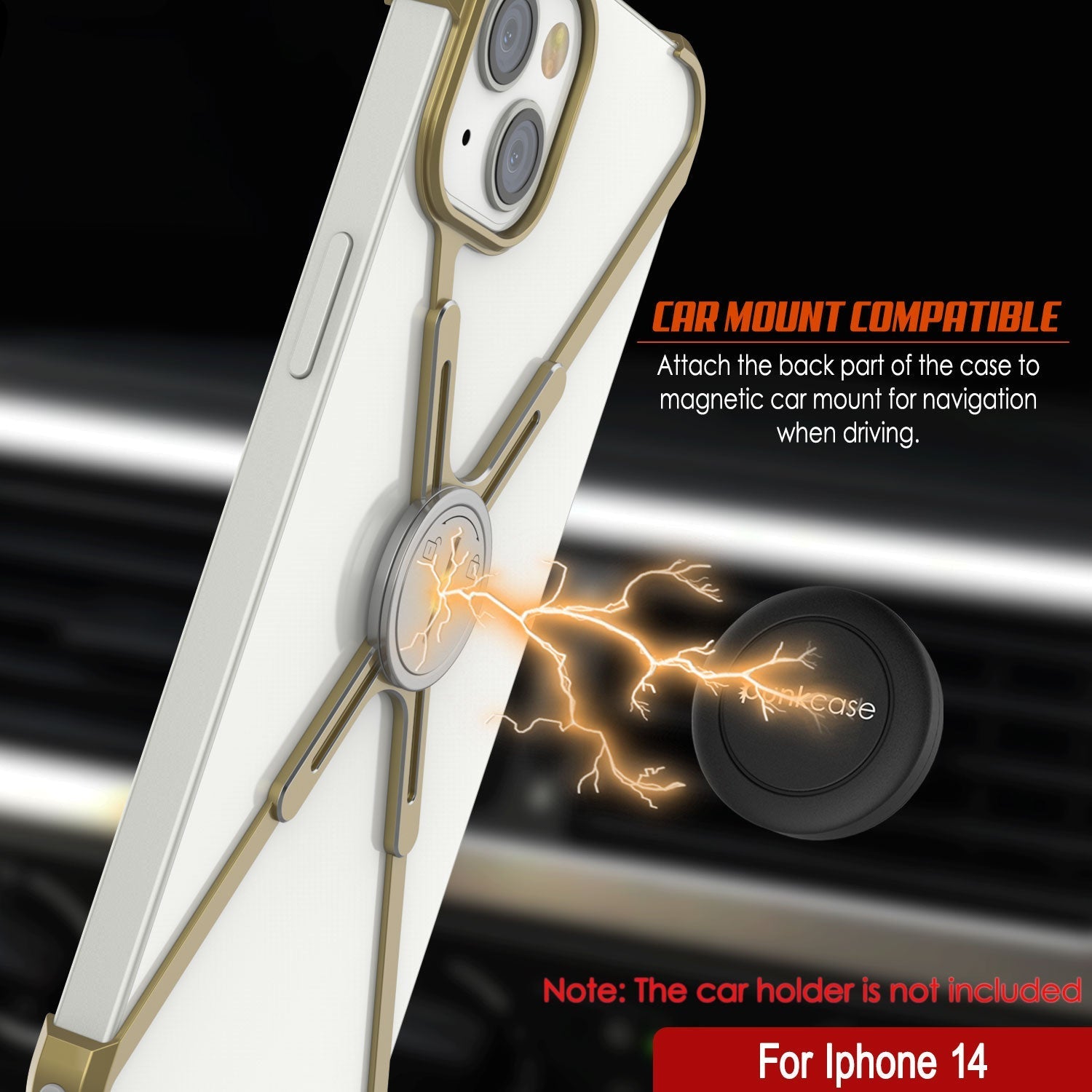 Funda Punkcase iPhone 14 [Serie Backbone] Ultrafina de Aluminio Metálico X-Frame para iPhone 14 (2022) (6.1") [Dorado]