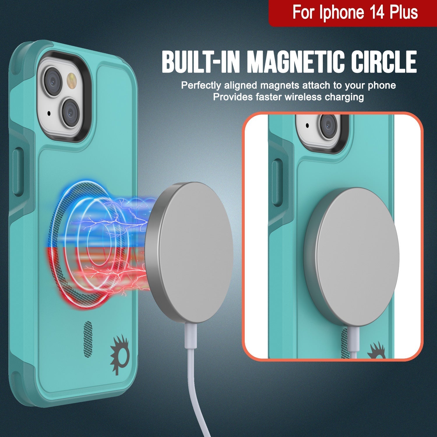 PunkCase iPhone 14 Plus Case, [Spartan 2.0 Series] Clear Rugged Heavy Duty Cover W/Built in Screen Protector [Blue] (Color in image: Blue)