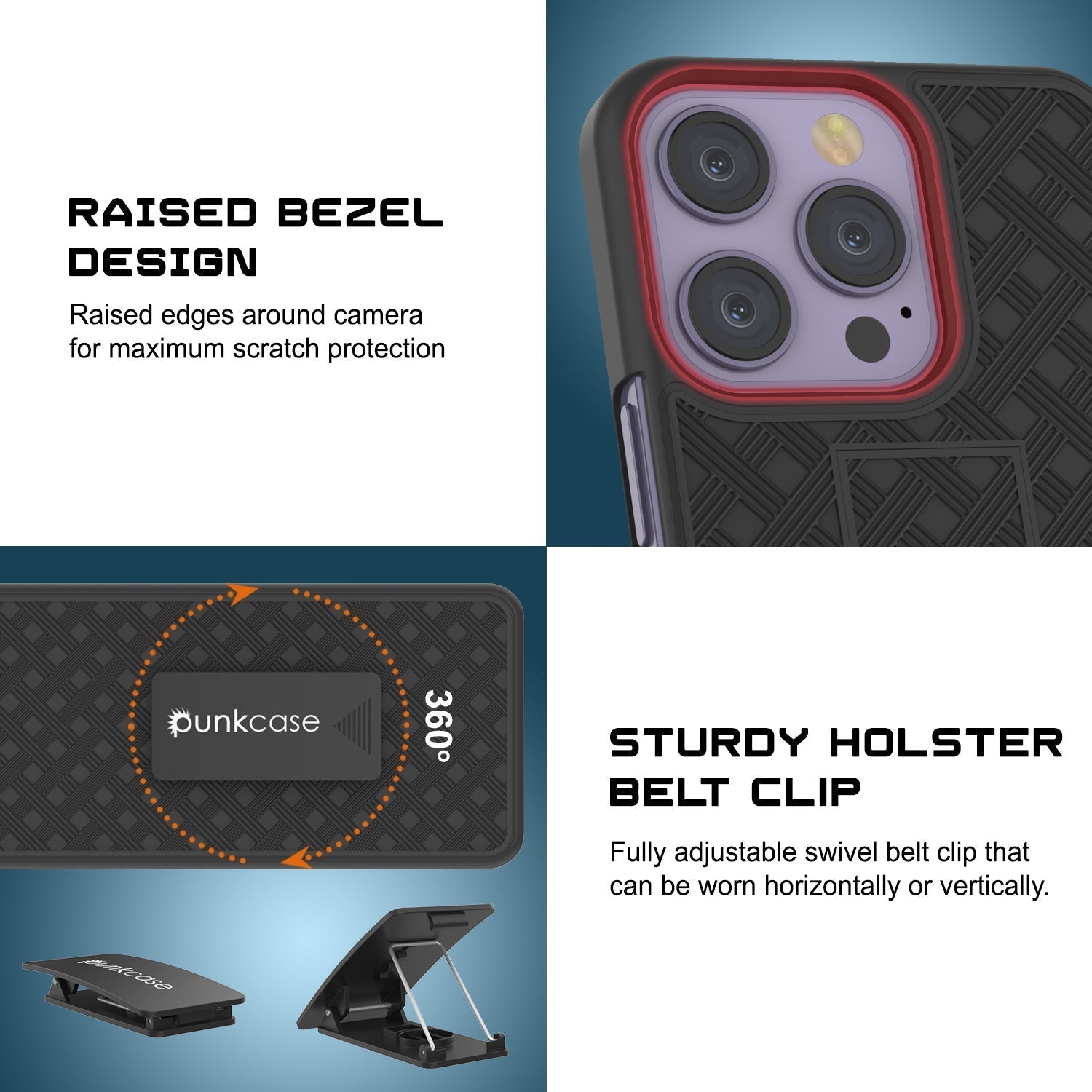 - ★ DISEÑO HÍBRIDO DE DOS PIEZAS: Funda de alta calidad de plástico PE y TPU con carcasa exterior de goma + protector de pantalla de vidrio templado PUNKSHIELD para un agarre seguro y protección avanzada contra caídas | ACCESO CONVENIENTE A TU iPhone: No es necesario quitar el clip de cinturón al quitar tu teléfono. Desliza de forma segura tu iPhone 15 Pro para mayor comodidad | LIGERO Y AJUSTE DELGADO que no agrega volumen a tu teléfono | COMPATIBLE CON CARGA INALÁMBRICA