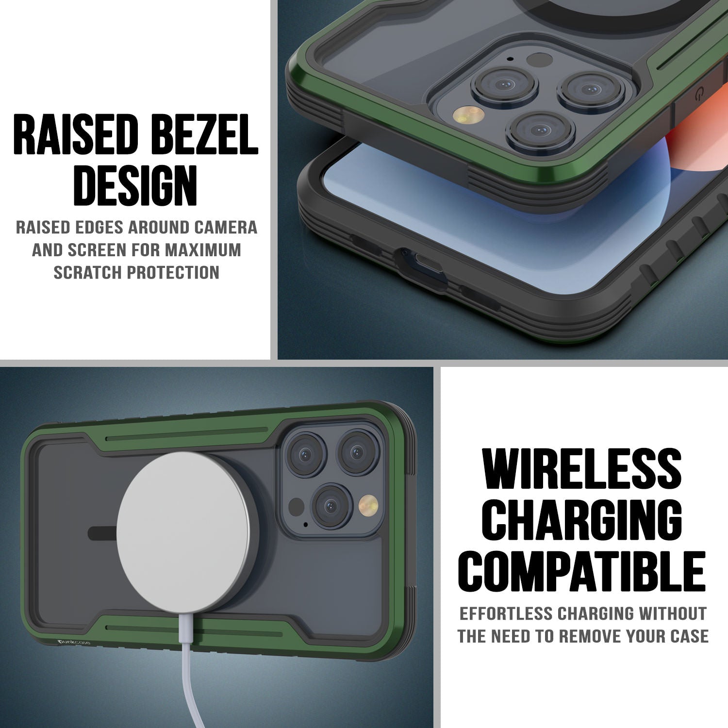 Funda Punkcase iPhone 15 Pro [Serie Armor Stealth MAG Defense] ultradelgada y protectora de grado militar con Múltiples capas y marco de aluminio [Transparente en la parte trasera] Protección máxima contra caídas para tu iPhone 15 Pro (6.1") (2023) (Verde oscuro)