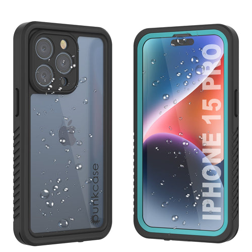 Funda impermeable para iPhone 15 Pro, Punkcase [Serie Extrema] Cubierta con armadura y protector de pantalla incorporado [Turquesa]