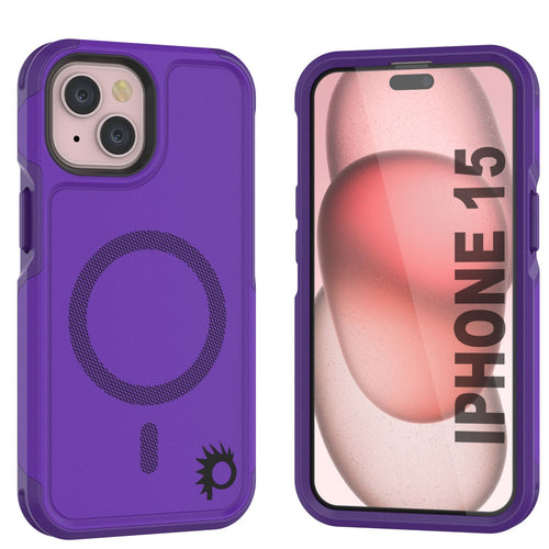 Funda PunkCase para iPhone 15, serie Spartan 2.0, cubierta transparente resistente y resistente con protector de pantalla incorporado [morado].