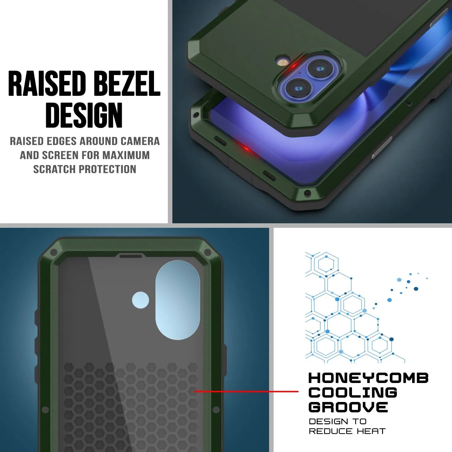 - ★ PROTECCIÓN DE CAPA DUAL DEFINITIVA: Los marcos de aluminio frontal y posterior ultrarresistentes encierran una capa de TPU que absorbe los golpes, lo que da como resultado una protección superior contra caídas | PROTECCIÓN ADICIONAL DE LA LENTE DE LA CÁMARA debido al bisel elevado | SISTEMA DE ENFRIAMIENTO EN PANAL: Las ranuras de enfriamiento especialmente moldeadas en la parte posterior de la carcasa garantizan la disipación del calor para proteger su iPhone 16 de daños debido al sobrecalentamiento