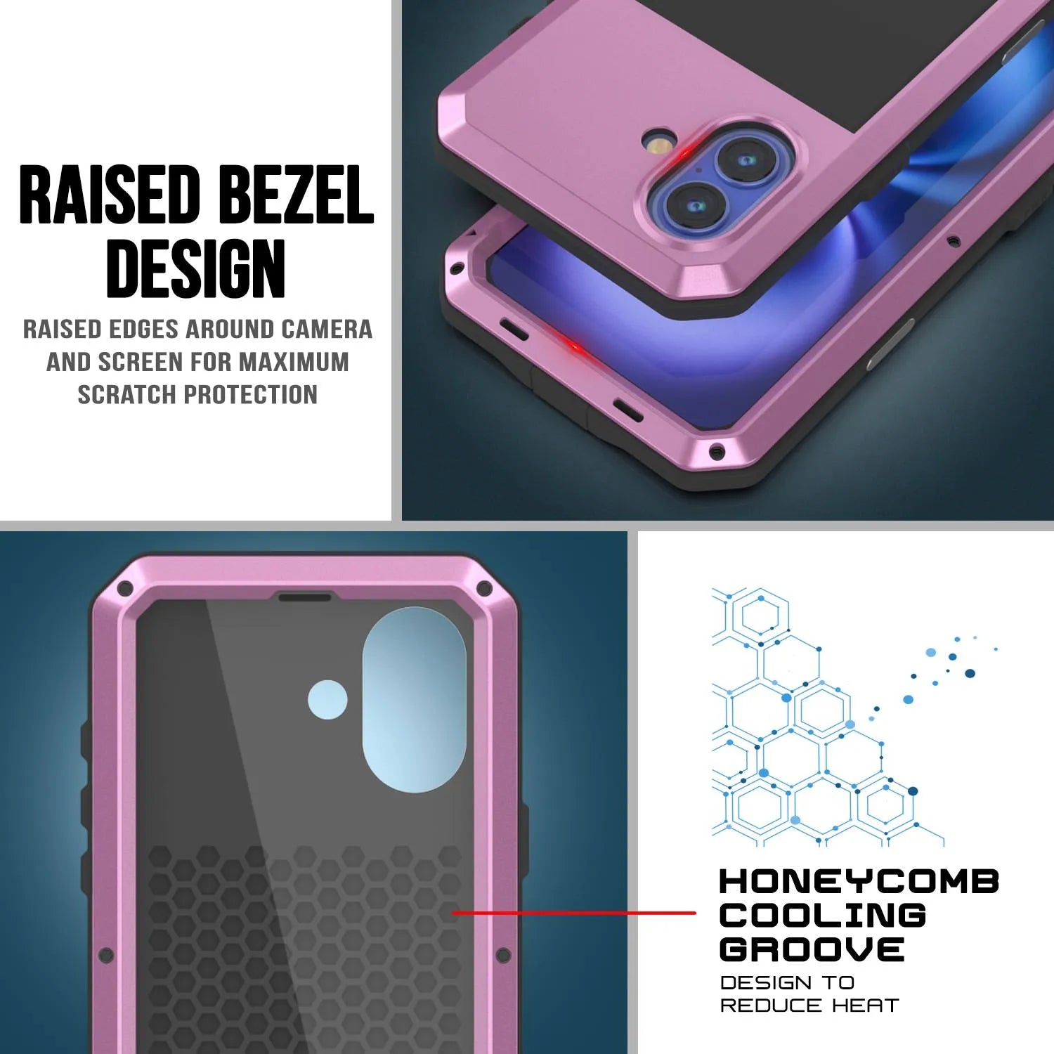 - ★ PROTECCIÓN DE CAPA DUAL DEFINITIVA: Los marcos de aluminio frontal y posterior ultrarresistentes encierran una capa de TPU que absorbe los golpes, lo que da como resultado una protección superior contra caídas | PROTECCIÓN ADICIONAL DE LA LENTE DE LA CÁMARA debido al bisel elevado | SISTEMA DE ENFRIAMIENTO EN PANAL: Las ranuras de enfriamiento especialmente moldeadas en la parte posterior de la carcasa garantizan la disipación del calor para proteger su iPhone 16 de daños debido al sobrecalentamiento