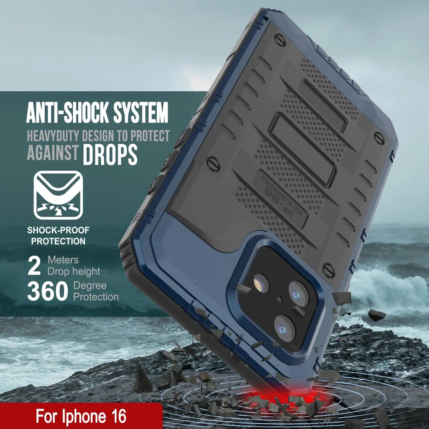 Punkcase iPhone 16 Case de aluminio impermeable [Serie Metal Extreme 3.0] Cubierta de parachoques Rugged IP68 con Buillt en la pantalla Protector | Protección definitiva para su iPhone 16 (6.1 ")