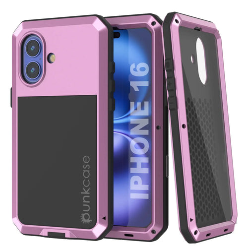 Funda de metal para iPhone 16, carcasa resistente de grado militar [a prueba de golpes], carcasa rígida de cuerpo completo [rosa]