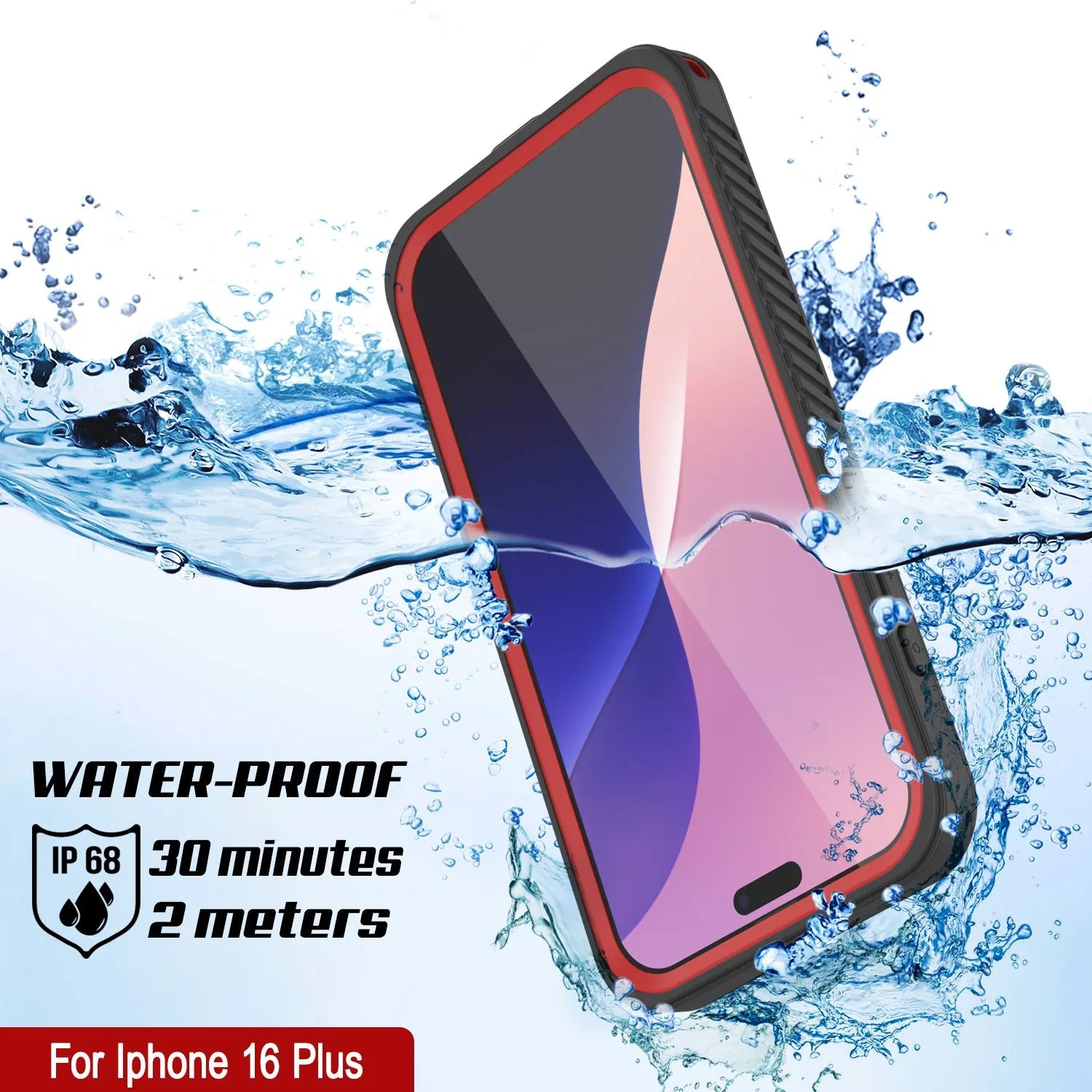 Funda impermeable Punkcase para iPhone 16 Plus [Serie Extreme Mag] [Ajuste fino] [Certificación IP68] [A prueba de golpes] [A prueba de nieve] [A prueba de suciedad] Funda protectora con protector de pantalla incorporado para Apple iPhone 16 Plus [Rojo]