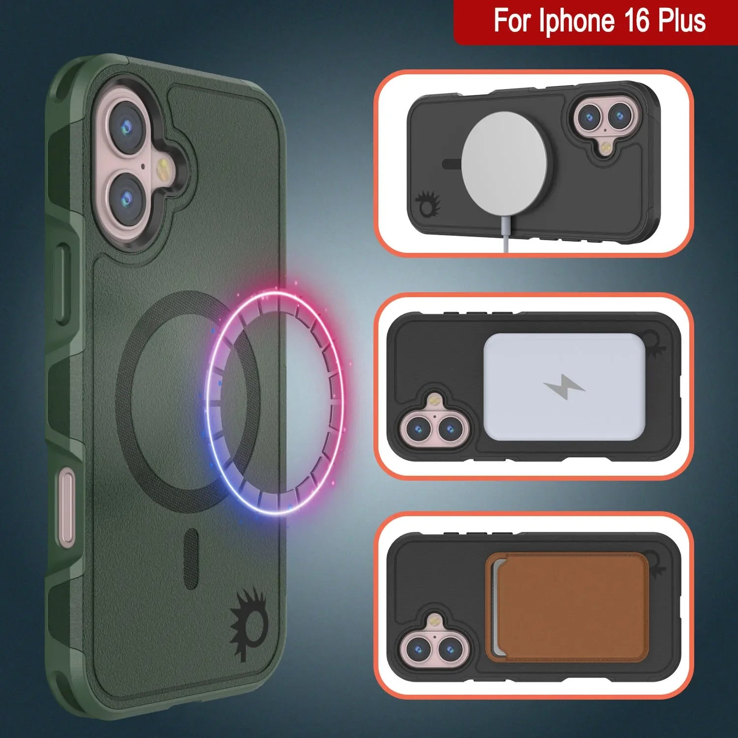 Funda PunkCase para iPhone 16 Plus, [Serie Spartan 2.0], transparente, resistente y duradera, con protector de pantalla incorporado [verde oscuro]