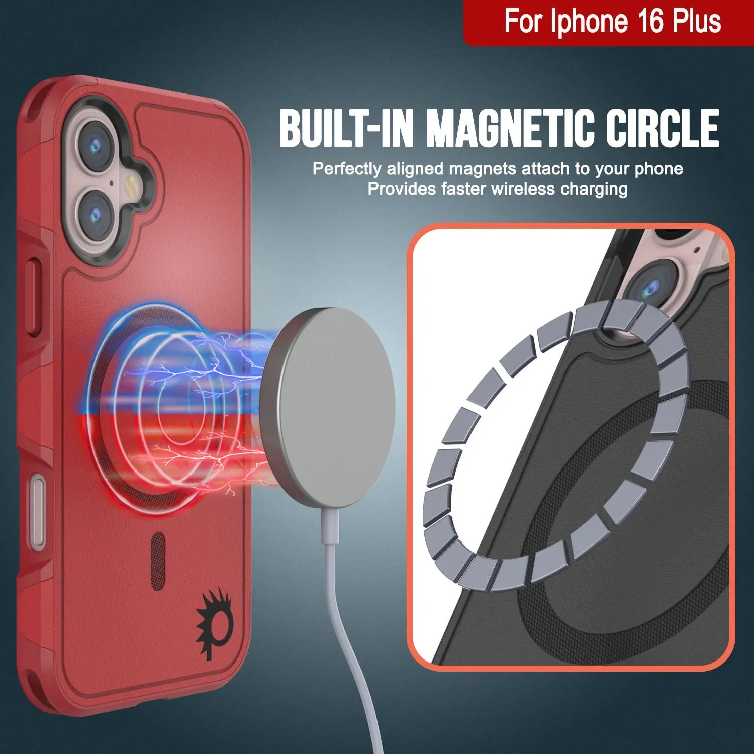Funda PunkCase para iPhone 16 Plus, [Serie Spartan 2.0], transparente, resistente y duradera, con protector de pantalla incorporado [rojo]