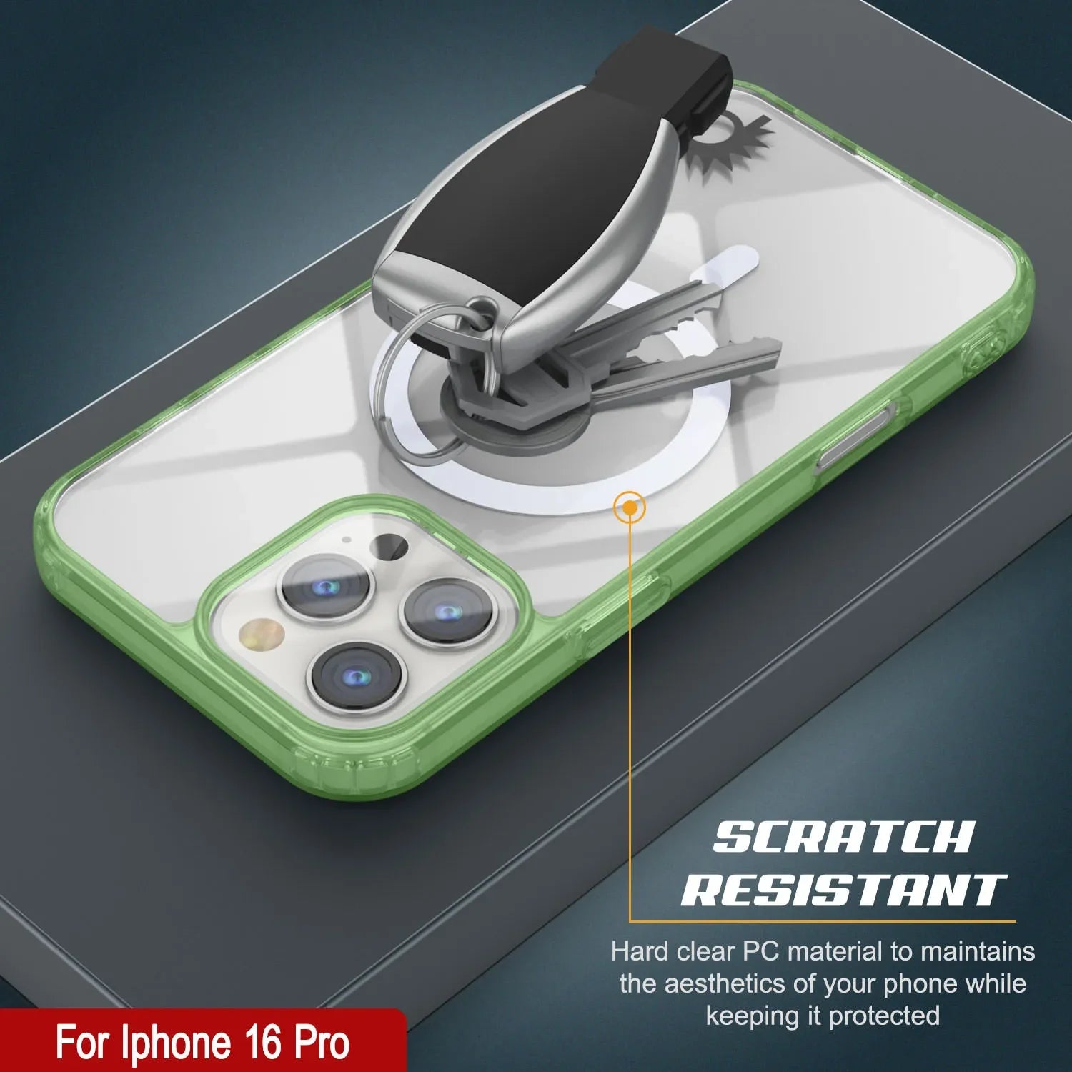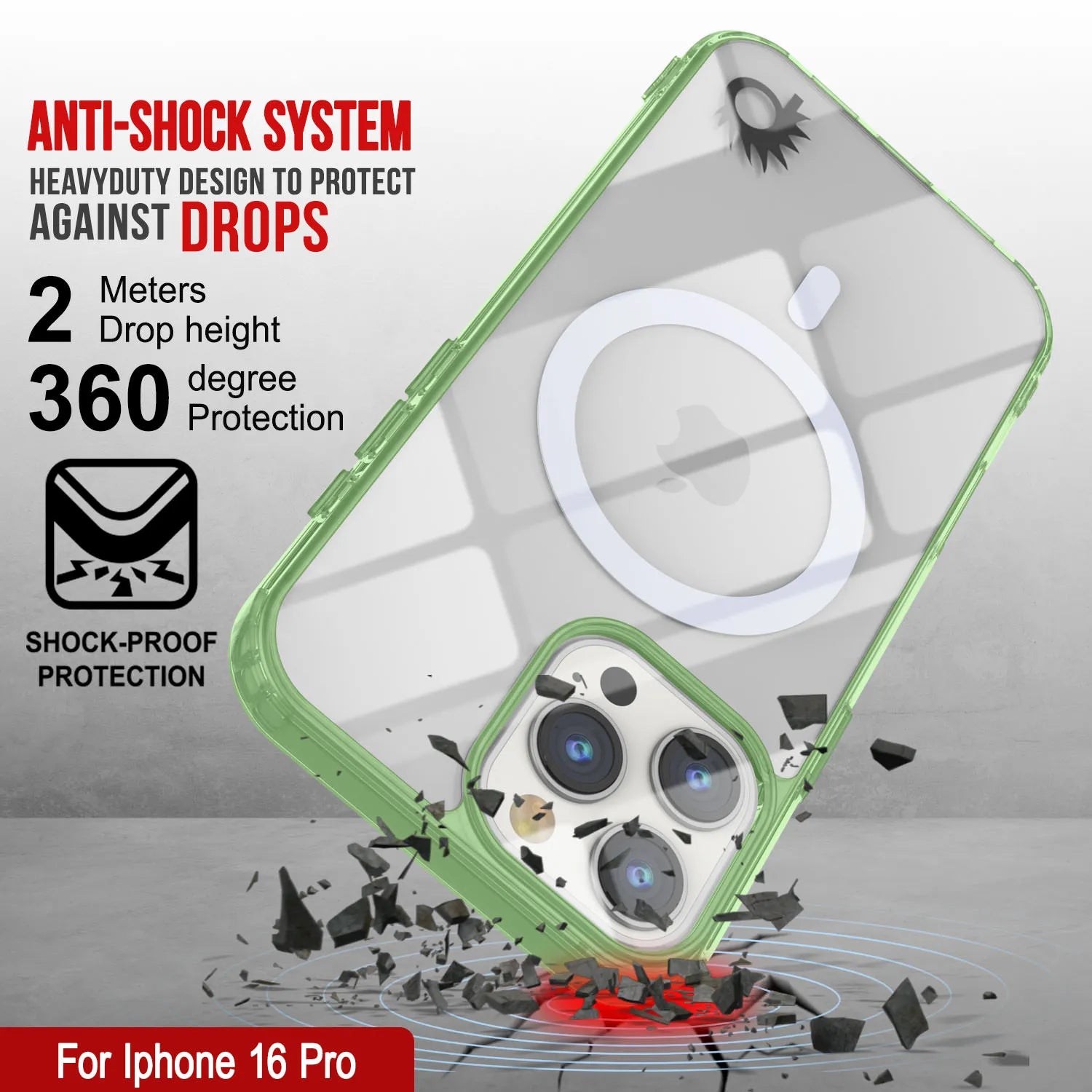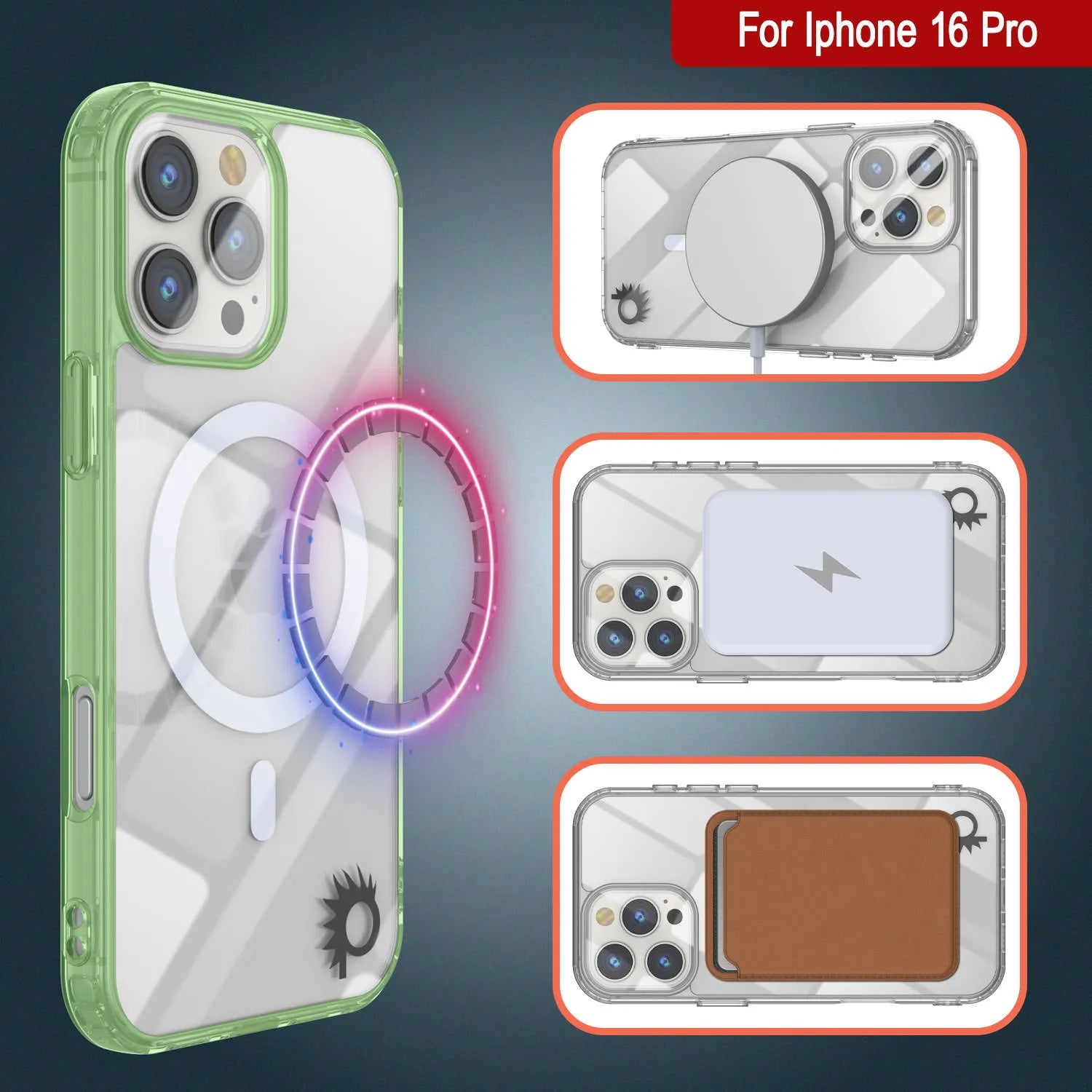 Estuche de carga inalámbrica magnética Punkcase para iPhone 16 Pro [Serie ClearMag] [Verde]
