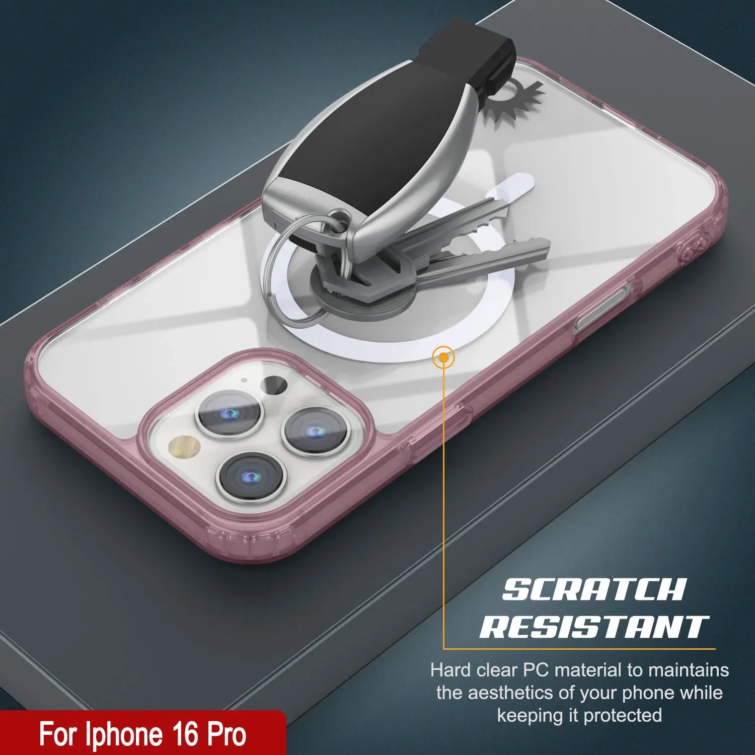 Estuche de carga inalámbrica magnética Punkcase para iPhone 16 Pro [Serie ClearMag] [Rosa]