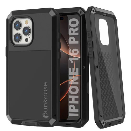 Funda impermeable para iPhone 16 Pro, Punkcase [Extreme Mag Series] Armor Cover con protector de pantalla incorporado [Negro]