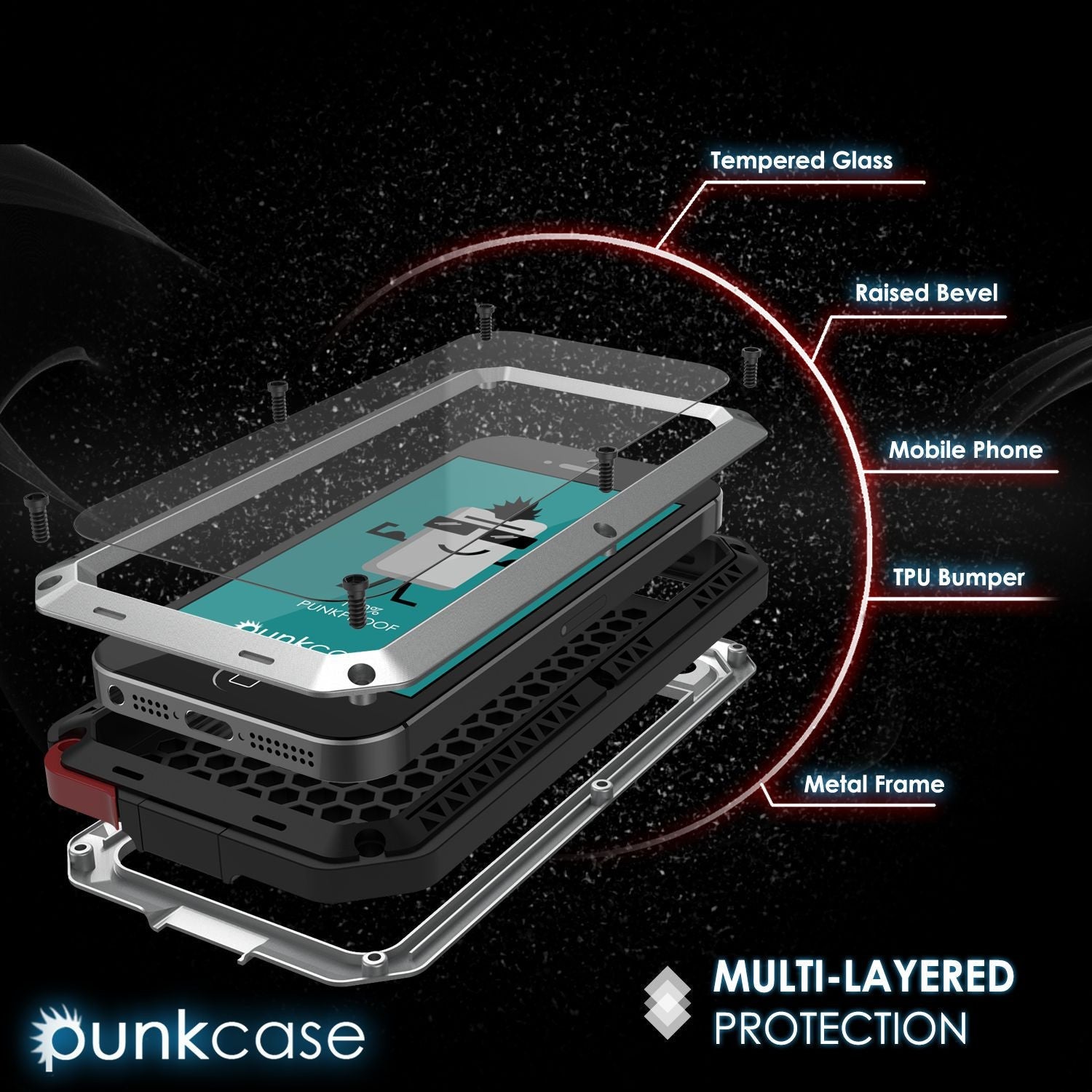 El Punkcase® METALLIC viene con un protector de pantalla de vidrio templado Armor 9H de 0,33 mm de grosor incorporado.