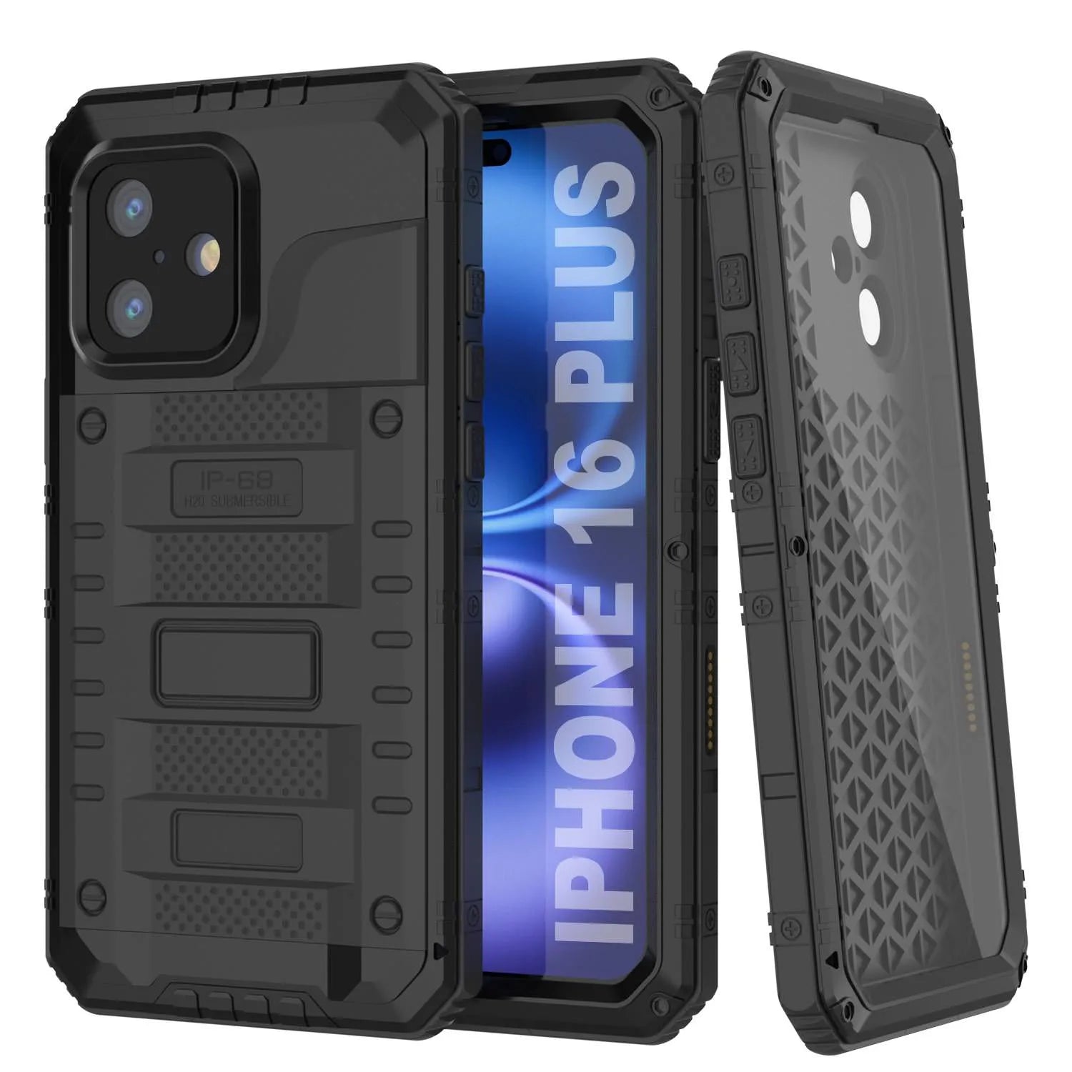 iPhone 16 Plus Metal Extreme 3.0 Serie Estuche impermeable de aluminio IP68 w/Buillt en la pantalla Protector y Kickstand [negro]