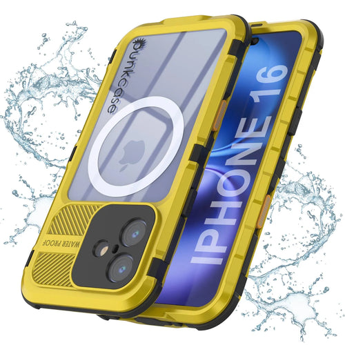 Estuche impermeable de aluminio Metal Extreme 2.0 Series para iPhone 16 con protección IP68 y protector de pantalla incorporado [amarillo]