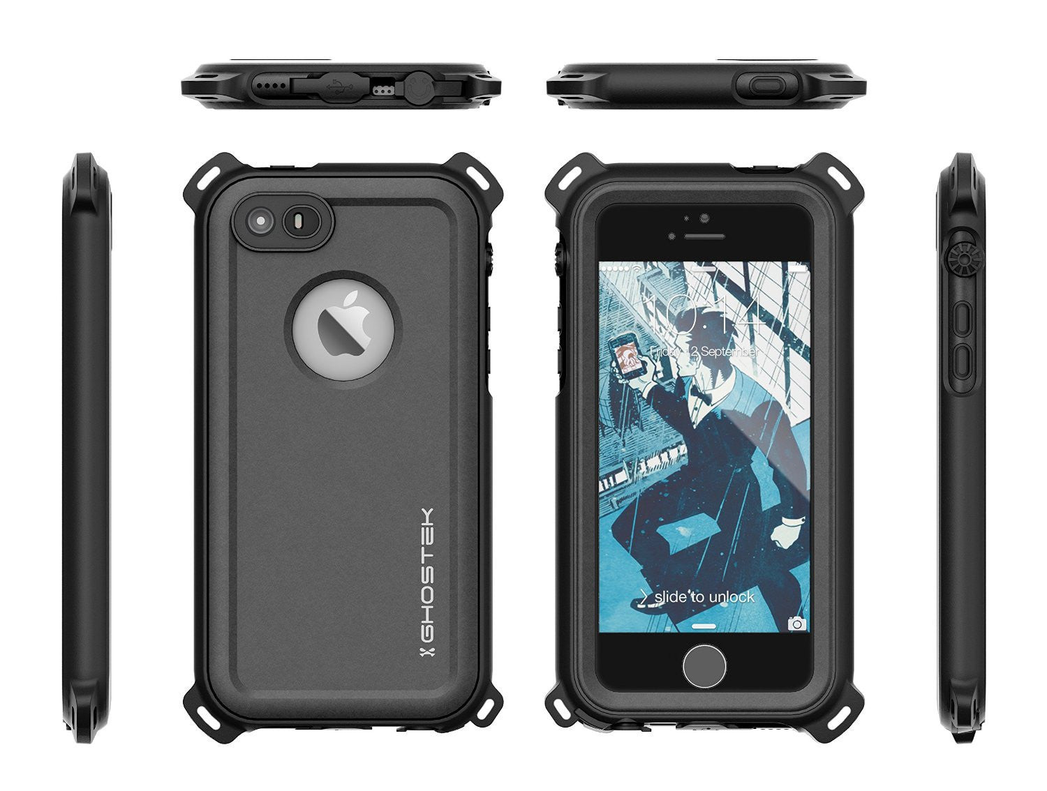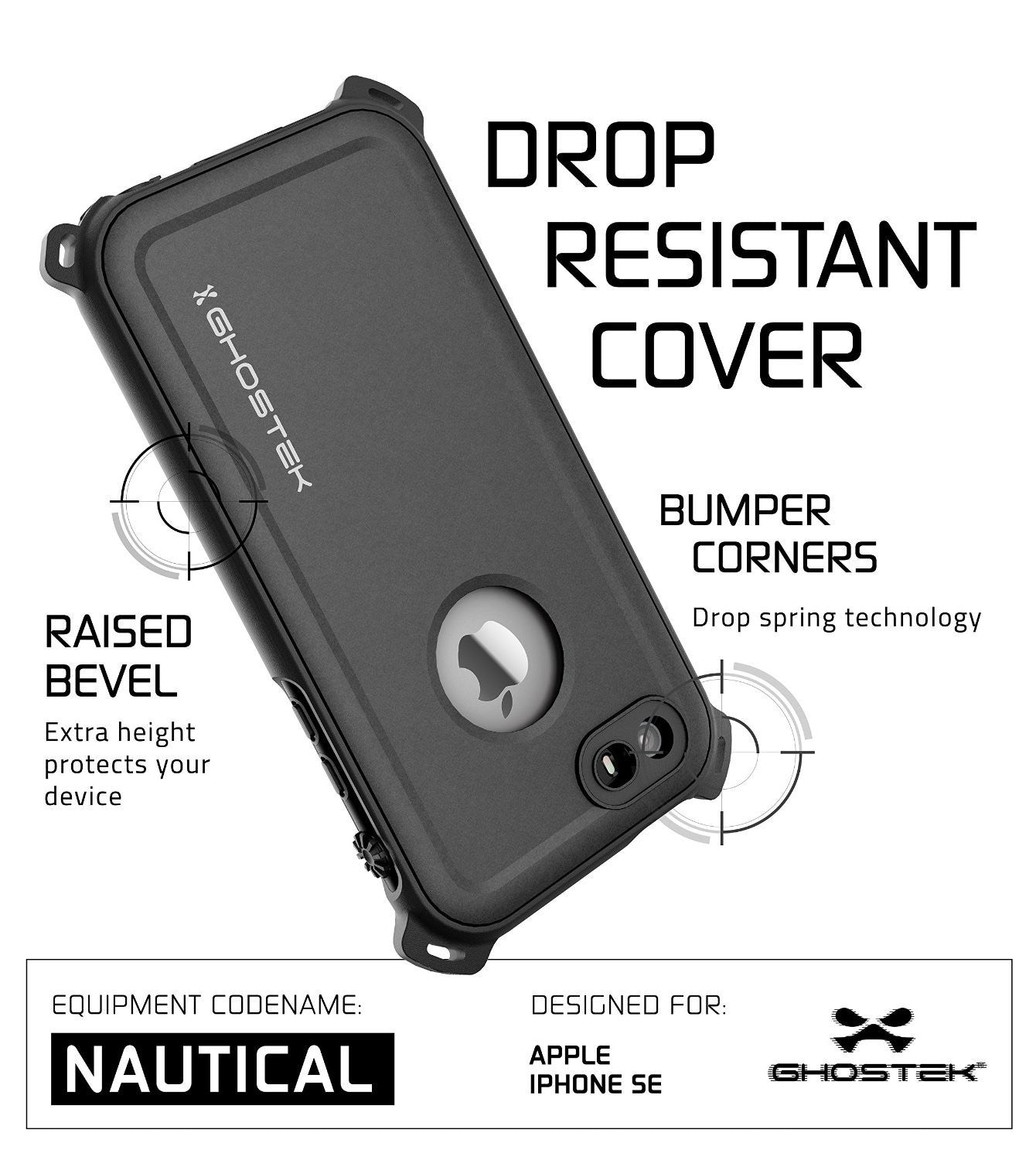 Funda impermeable para iPhone SE/5S/5, serie Nautical de Ghostek para Apple iPhone SE/5S/5 | Bajo el agua | Resistente a golpes | Resistente al polvo | Resistente a la nieve | Marco de aluminio | Lista para la aventura | Ajuste ultra | Nadar (negro)