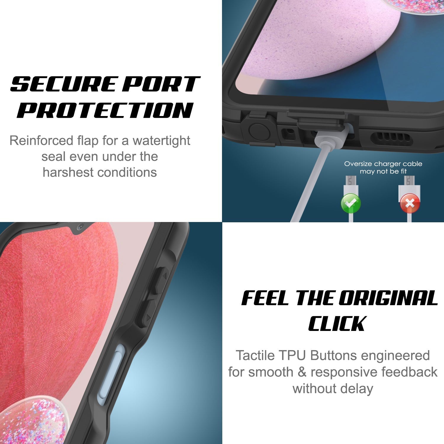 ★ 100% A PRUEBA DE PUNKS: Lleva tu A13 Lite en excursiones de snorkel, desiertos polvorientos, senderos embarrados o esquí cuesta abajo; tu estuche StudStar te mantendrá conectado y protegido sin importar la aventura en la que te encuentres. RESISTENTE AL AGUA: Certificado IP-68: sumergible hasta 6,6 pies. A PRUEBA DE SUCIEDAD Y POLVO: Protección avanzada de sellado que bloquea la suciedad y el polvo de obstruir tus puertos. A PRUEBA DE NIEVE: Completamente cerrado contra la nieve y el hielo. A PRUEBA DE GOLPES: Resistencia militar - protege tu A13 Lite de caídas de hasta 6.6 pies.
