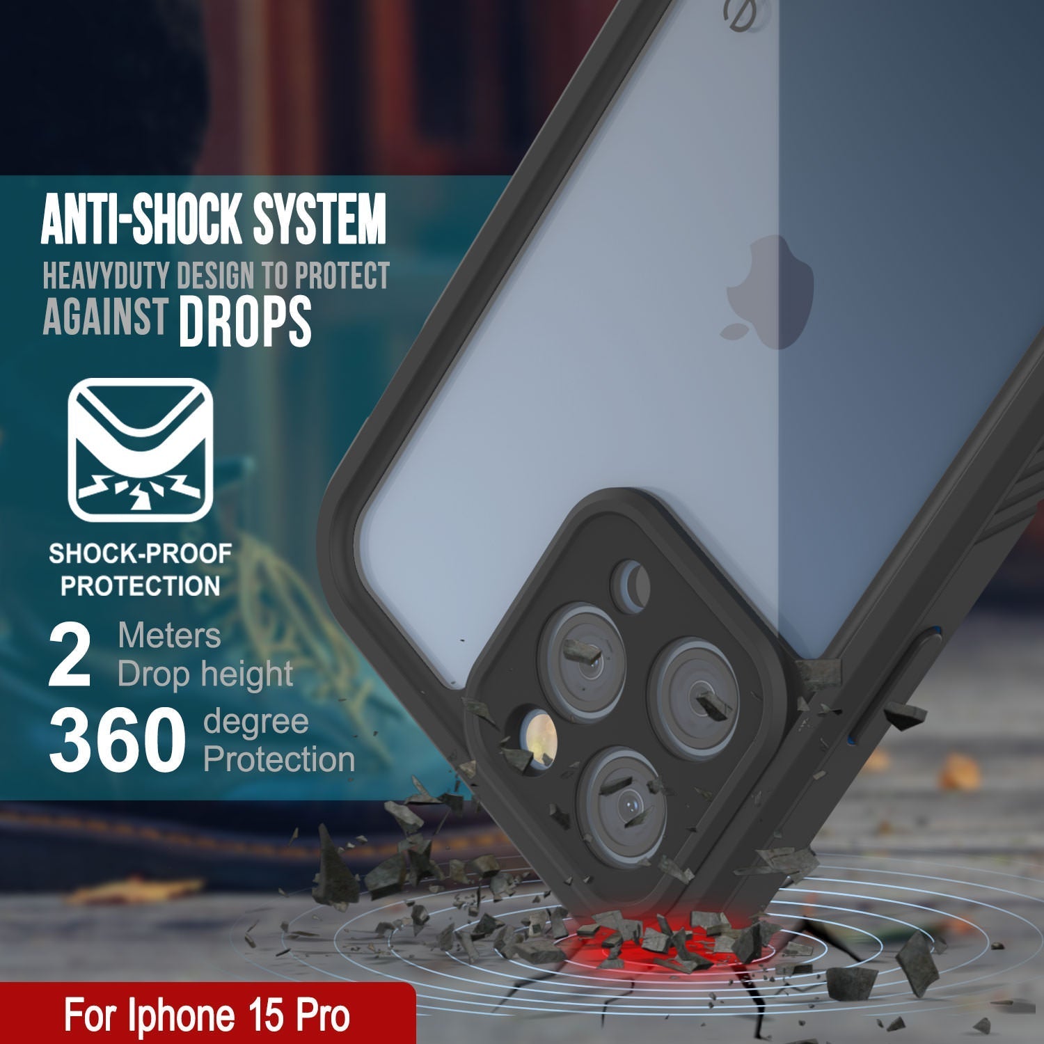 Funda impermeable transparente para el iPhone 15 Pro, Punkcase [Serie StudStar] [Ajuste Delgado] [Certificado IP68] [A prueba de golpes] [A prueba de suciedad] [A prueba de nieve] Funda protectora para Apple iPhone 15 Pro [Transparente]