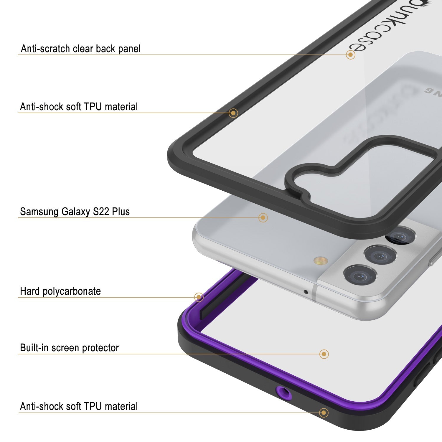 Funda impermeable Punkcase Galaxy S22+ Plus [Serie Extrema] [Ajuste delgado] [Certificado IP68] [A prueba de golpes] [A prueba de suciedad] [A prueba de nieve] Cubierta de armadura para Galaxy S22+ Plus 5G (6.55") (2022) ) [Púrpura]