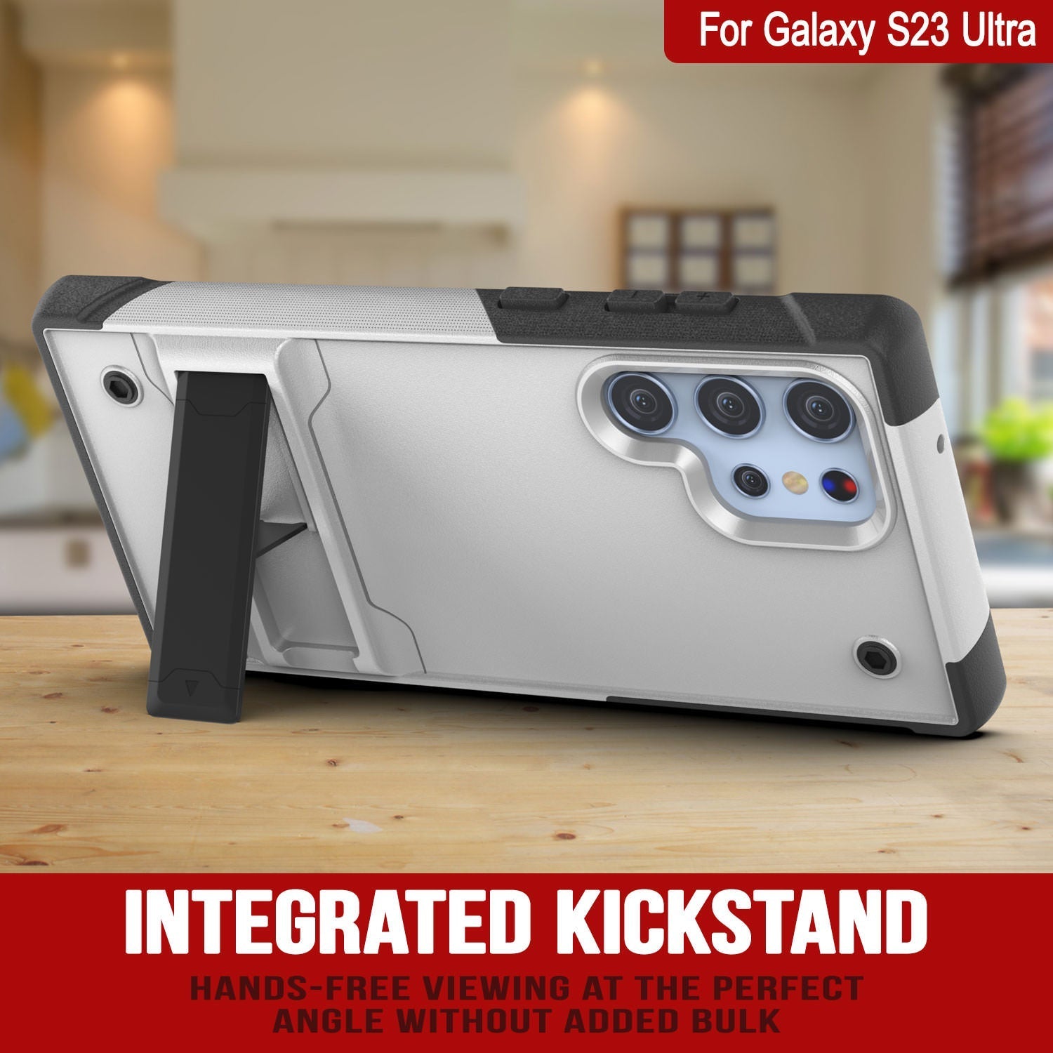 Funda Punkcase Galaxy S23 Ultra [Serie Reliance] Protectora Híbrida de Grado Militar con Soporte Incorporado [Blanco-Negro]