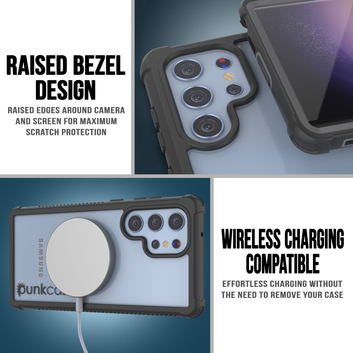 Funda PunkCase Galaxy S23 Ultra, [Serie Espartana] Cubierta Transparente Resistente de Alta Protección [Negra]