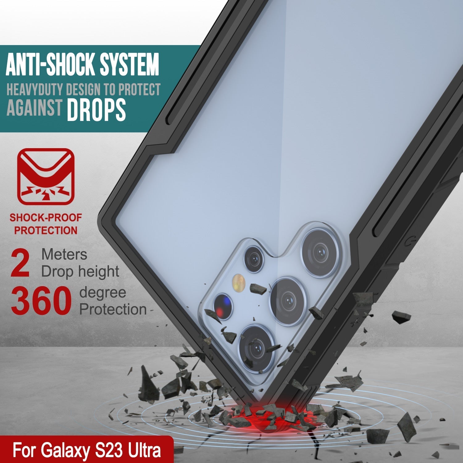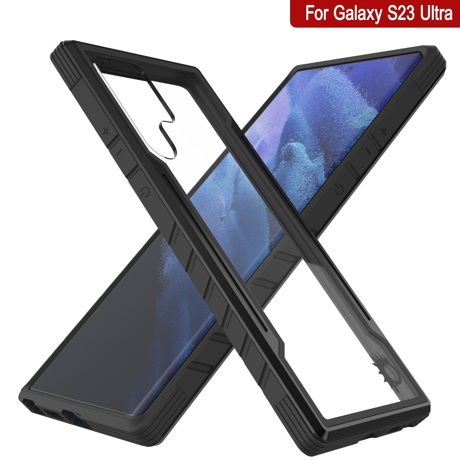 Punkcase S23 Ultra [Serie de defensa Stealth Armor] Funda ultra delgada y protectora de grado militar con varias capas con marco de aluminio [traserro transparente] Protección suprema contra caídas para tu S23 Ultra (6.8") (2023) (negro)
