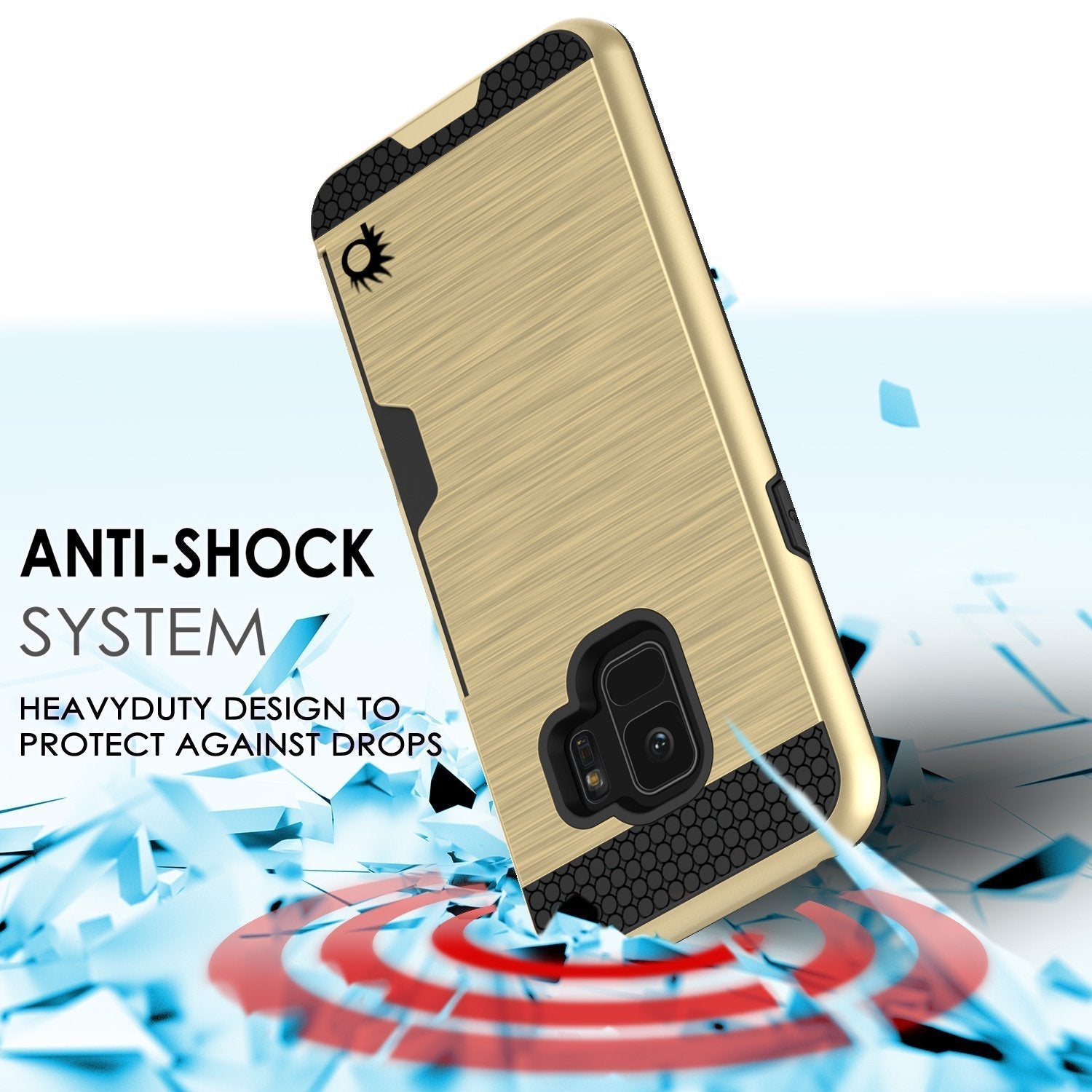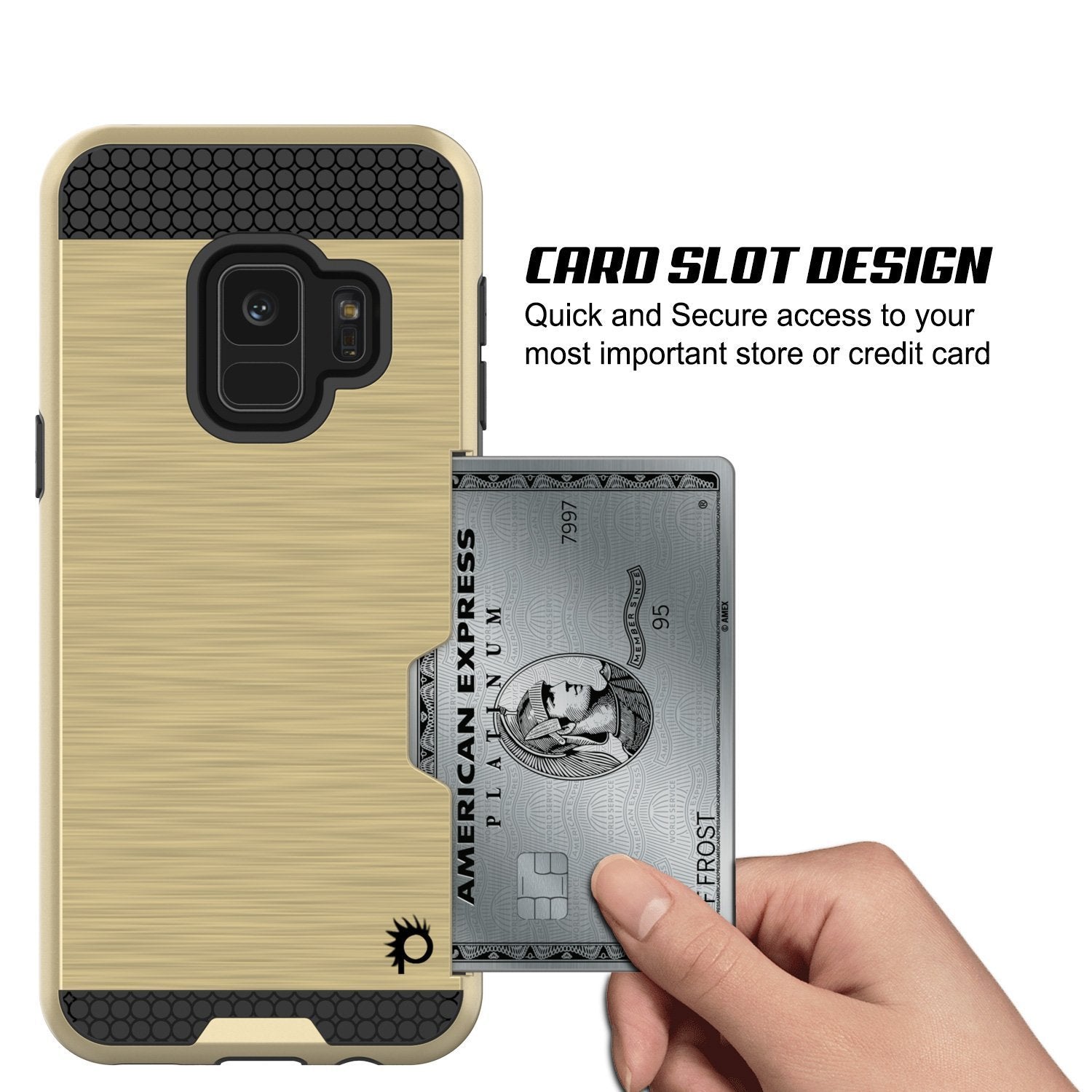 Funda Galaxy S9, PUNKcase [Serie SLOT] [Ajuste Delgado] Cubierta de Doble Capa con Sistema Antigolpes Integrado, Ranura para Tarjeta de Crédito y Protector de Pantalla PUNKSHIELD para Samsung Galaxy S9 [Oro]