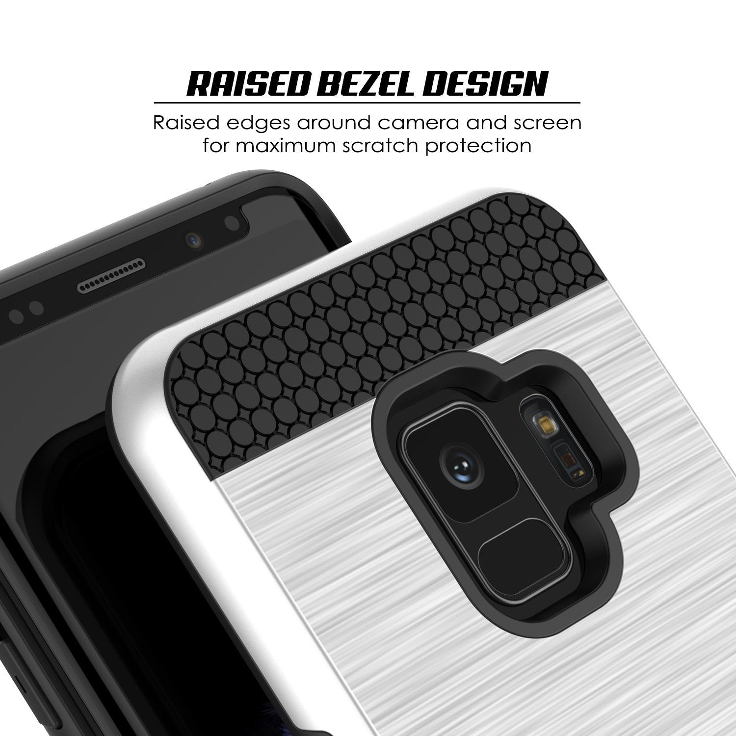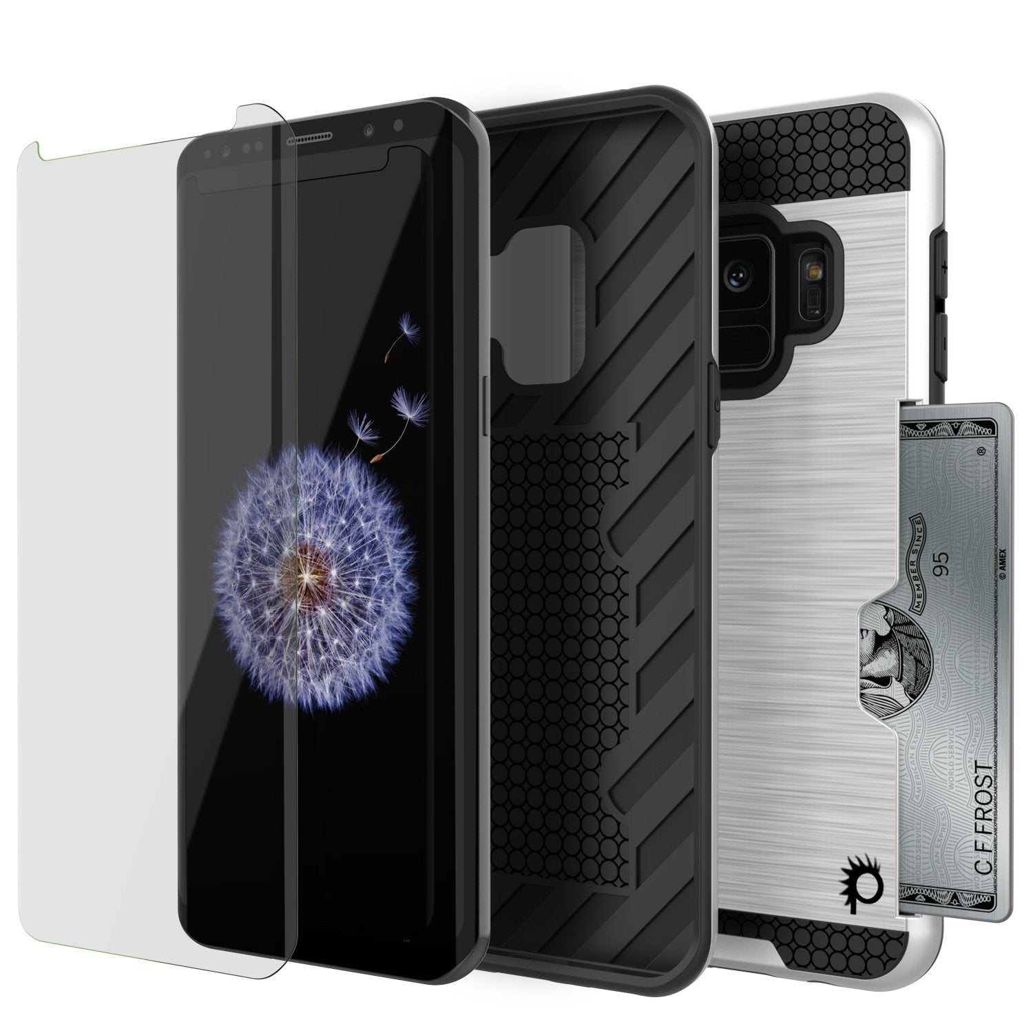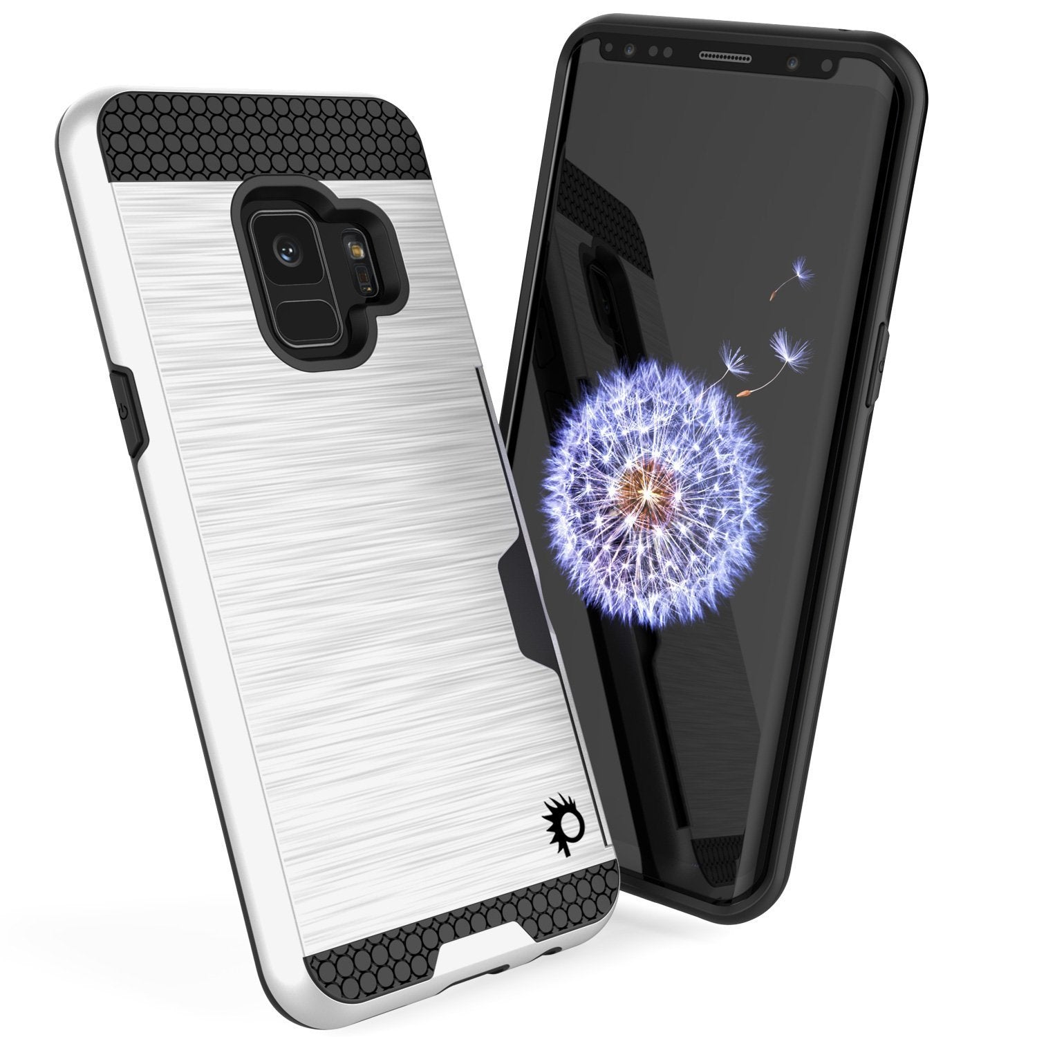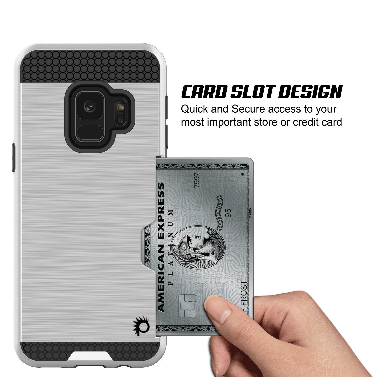 Galaxy S9 Case, PUNKcase [SLOT Series] [Slim Fit] Dual-Layer Armor Cover w/Integrated Anti-Shock System, Credit Card Slot & Screen Protector [White] (Color in image: Silver)