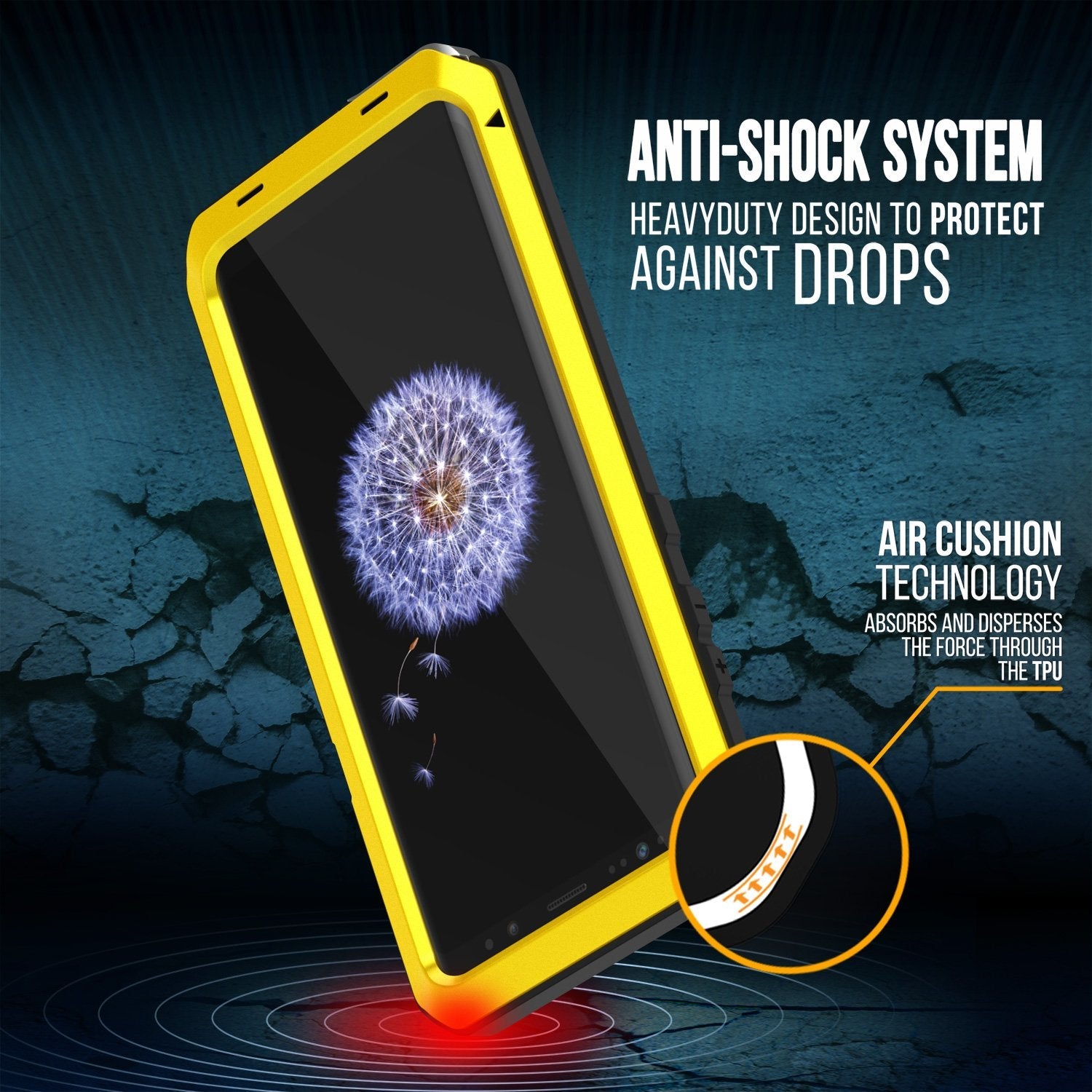 Galaxy S9 Metal Case, Heavy Duty Military Grade Rugged Armor Cover [shock proof] Hybrid Full Body Hard Aluminum & TPU Design [non slip] W/ Prime Drop Protection for Samsung Galaxy S9 [Neon] (Color in image: Gold)
